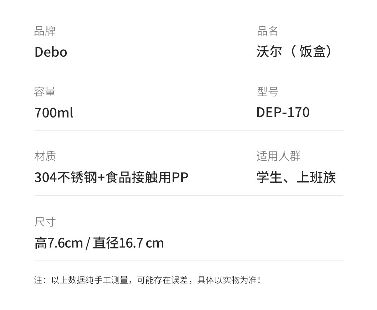 Debo德铂 沃尔 (饭盒)700ML DEP-170