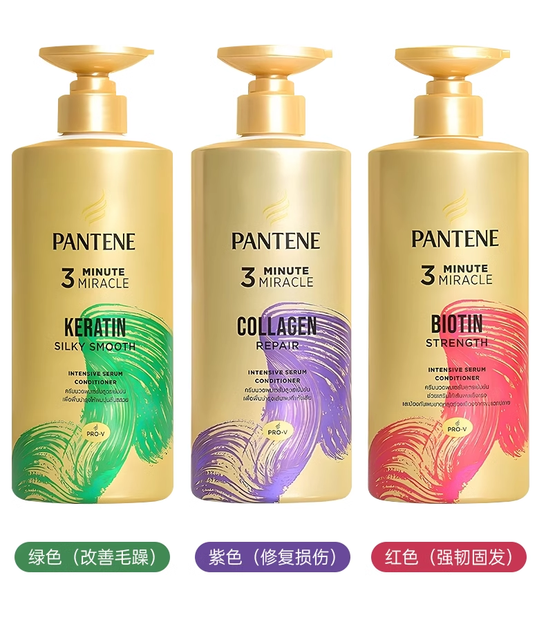 【保税仓】潘婷奇迹胶原蛋白强效护发素450ml红色/丝滑绿色/修复紫色