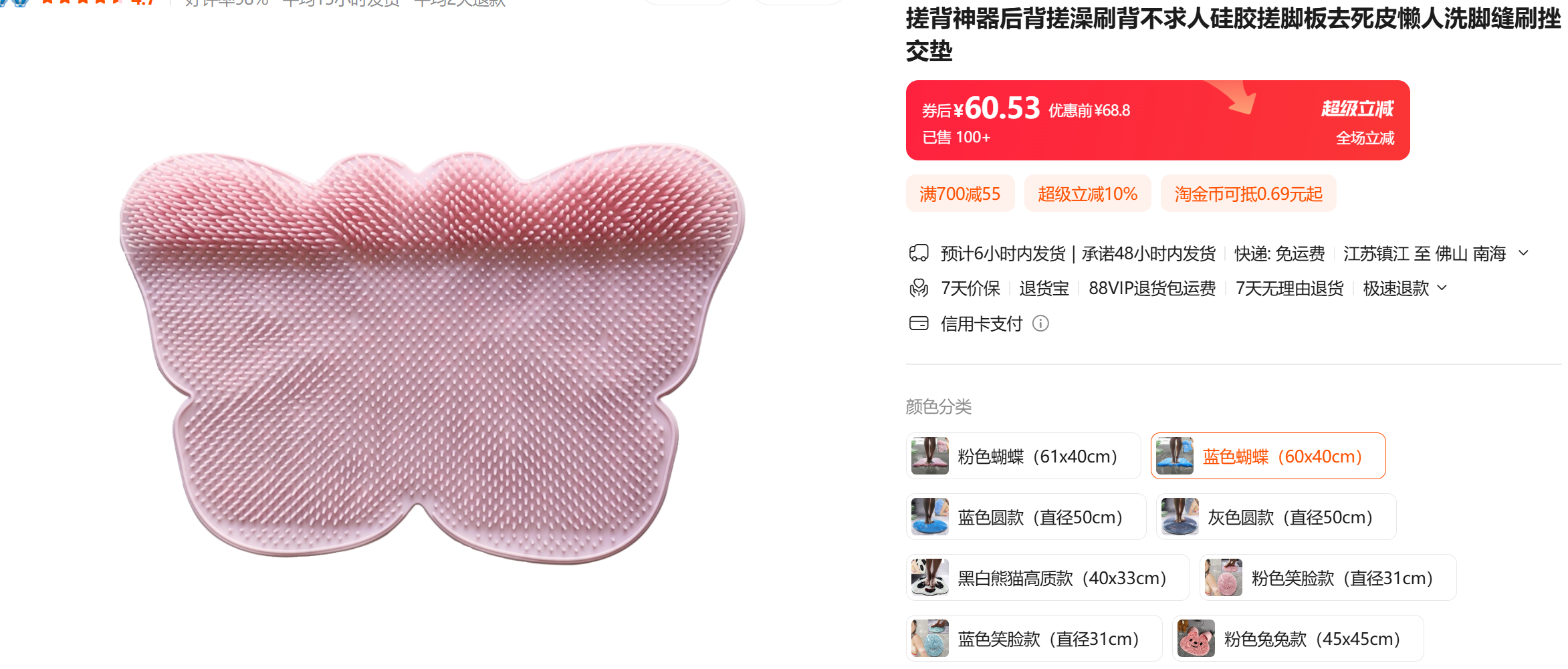 硅胶防滑搓脚垫 洗澡搓后背垫 温和清洁去死皮 60*40cm