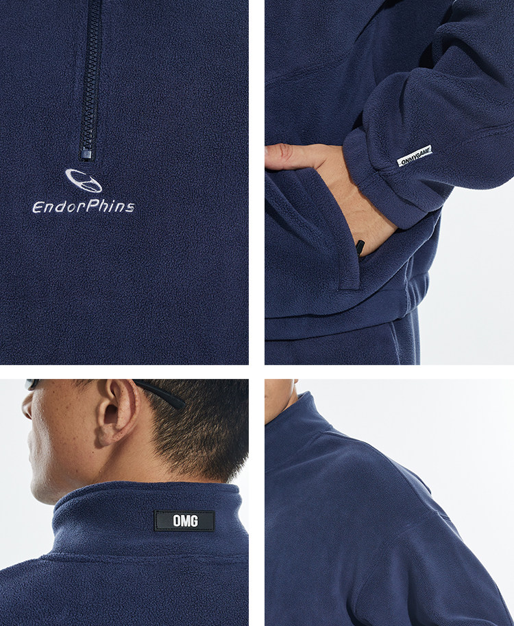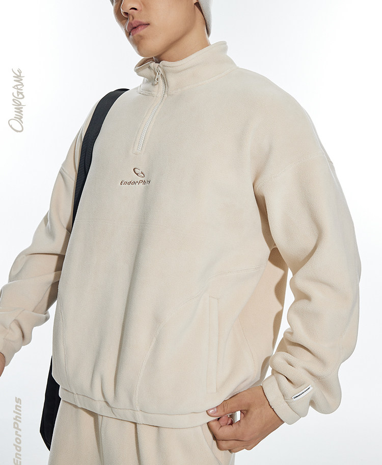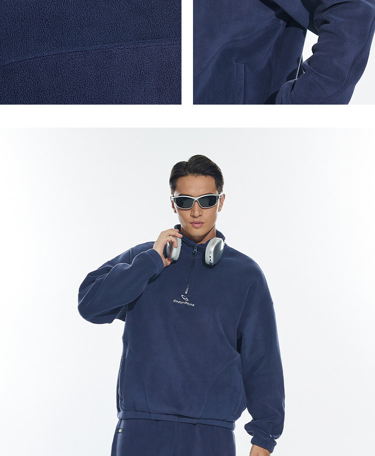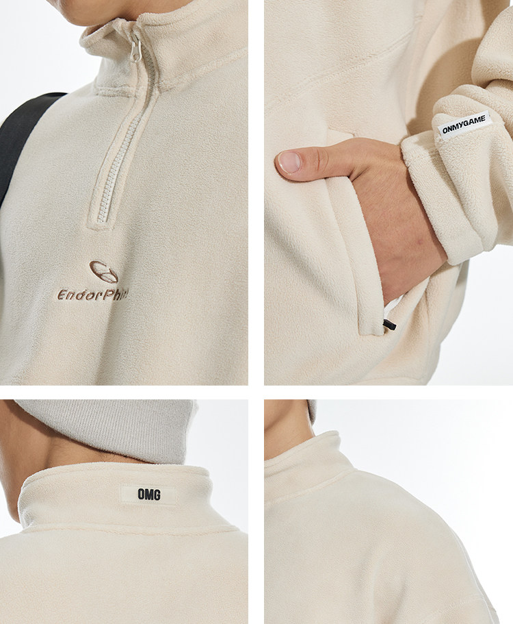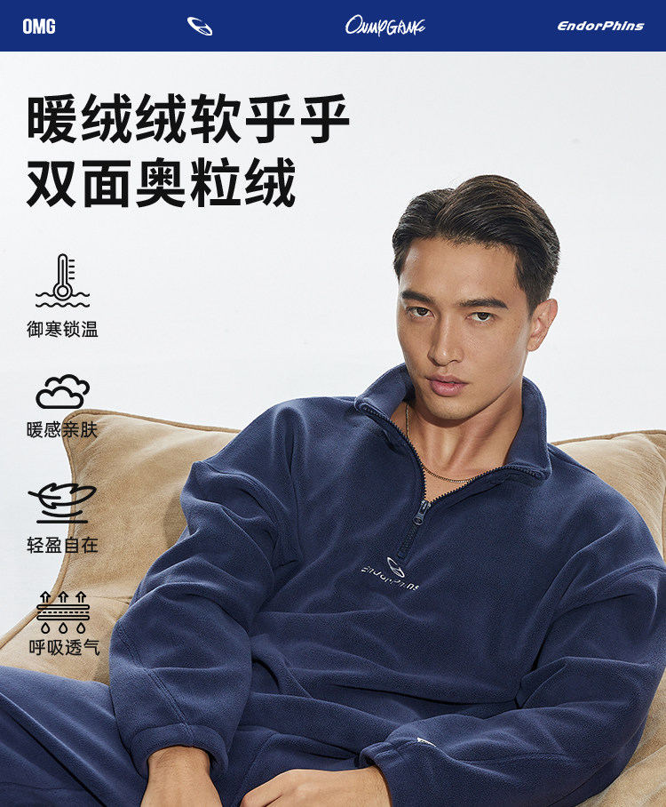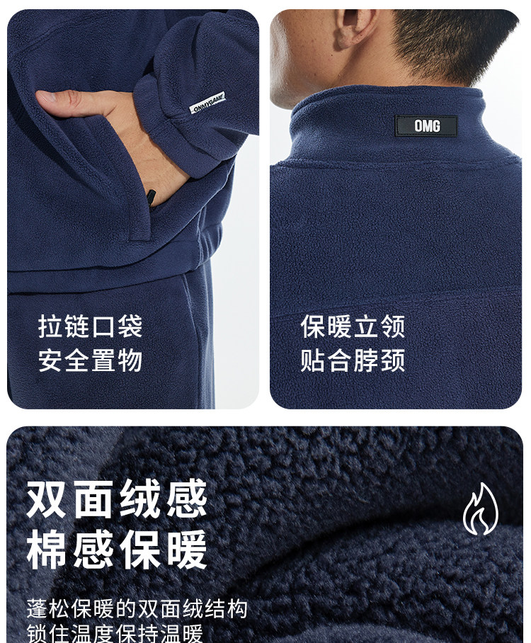 OMG运动 立领半拉链双面奥粒绒卫衣男秋冬季加绒加厚套头衫外套
