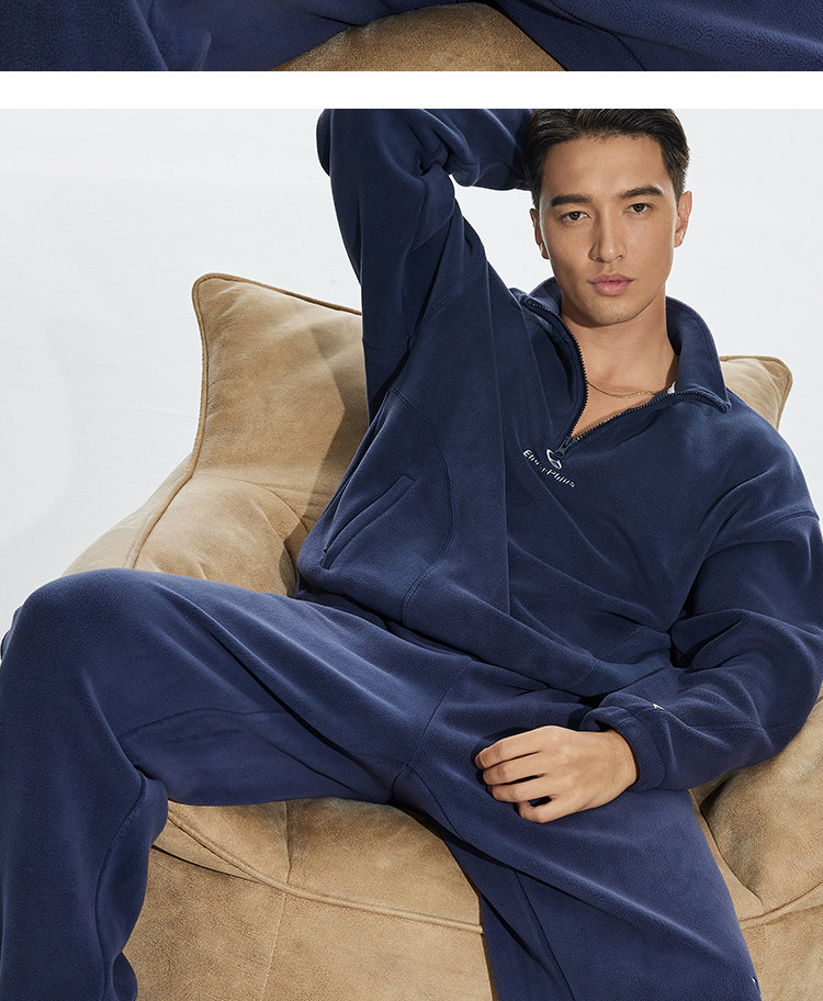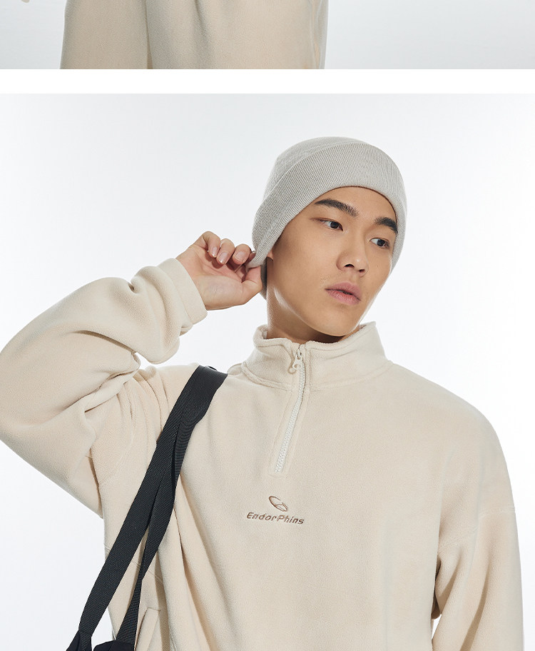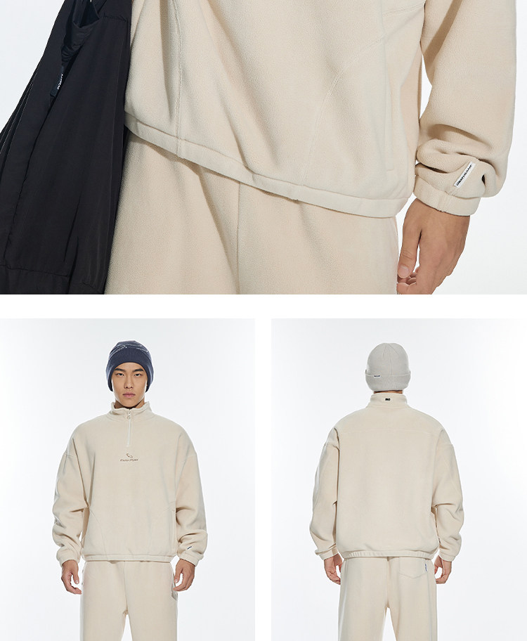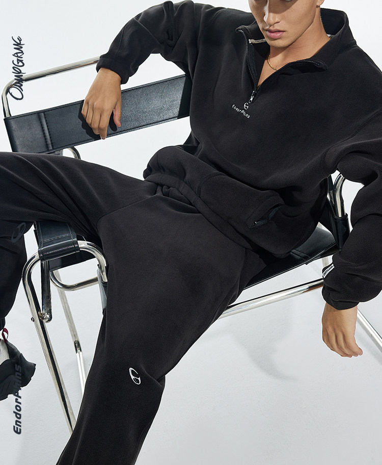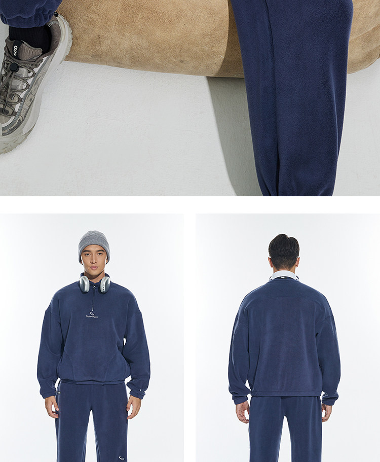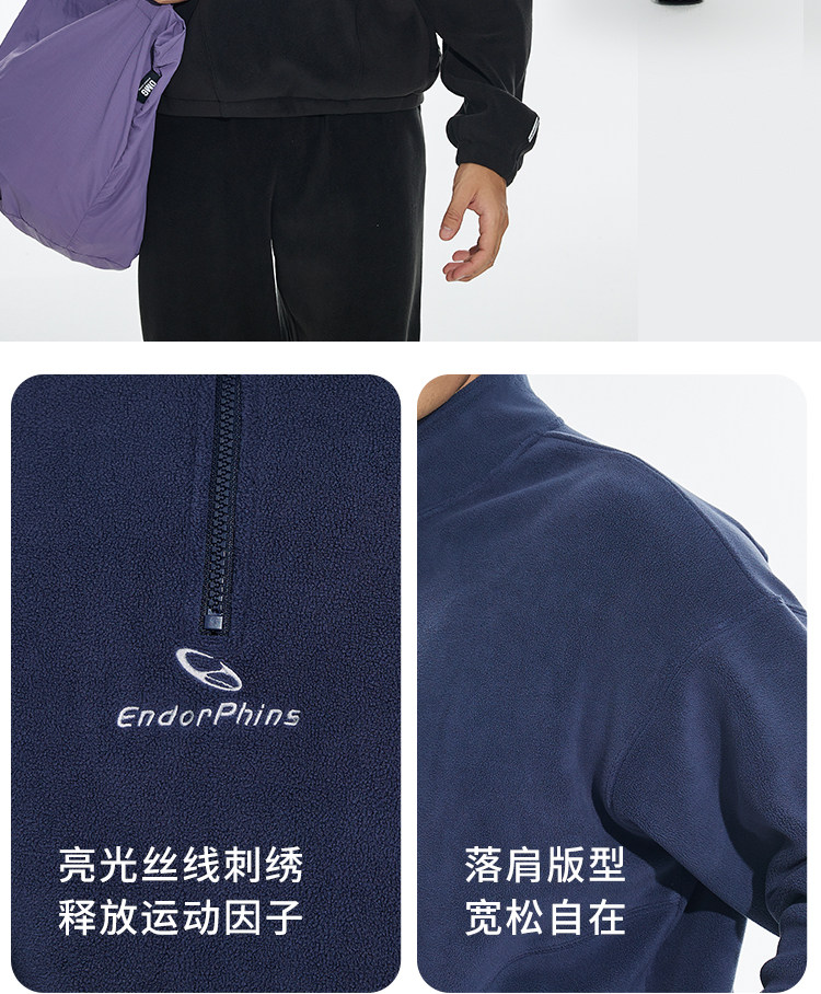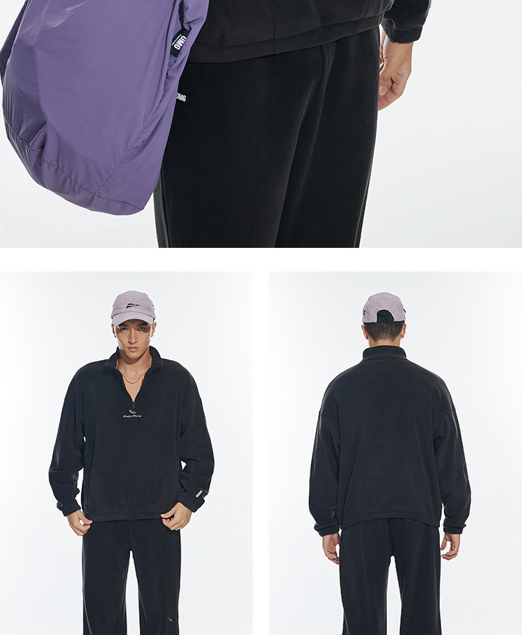 OMG运动 立领半拉链双面奥粒绒卫衣男秋冬季加绒加厚套头衫外套