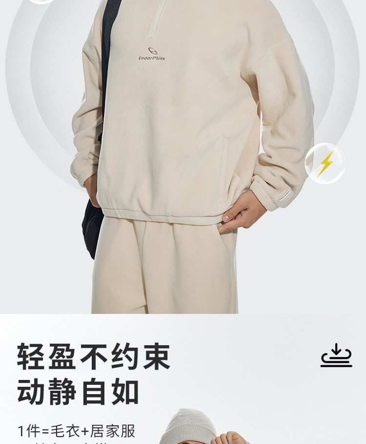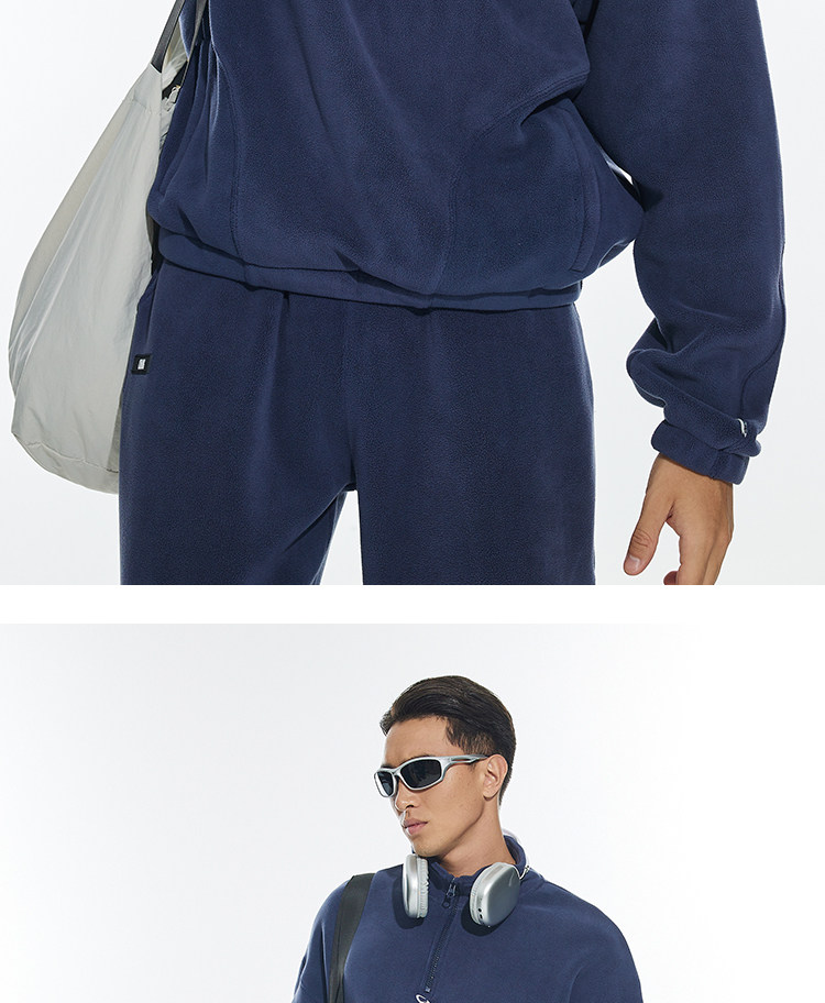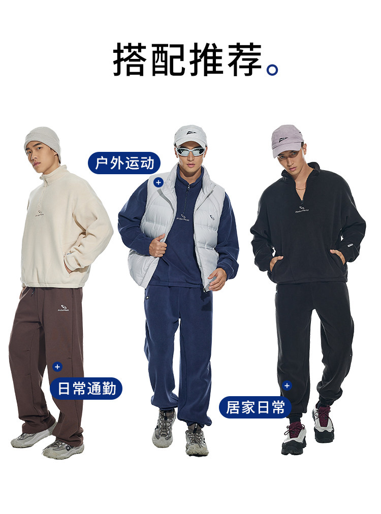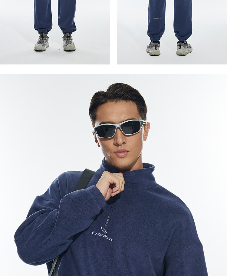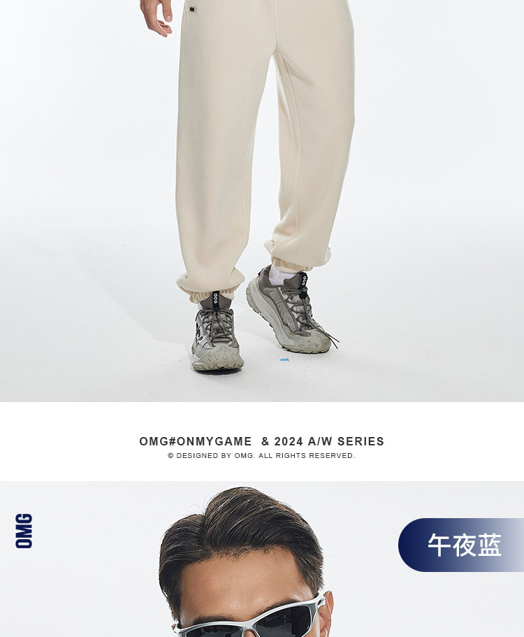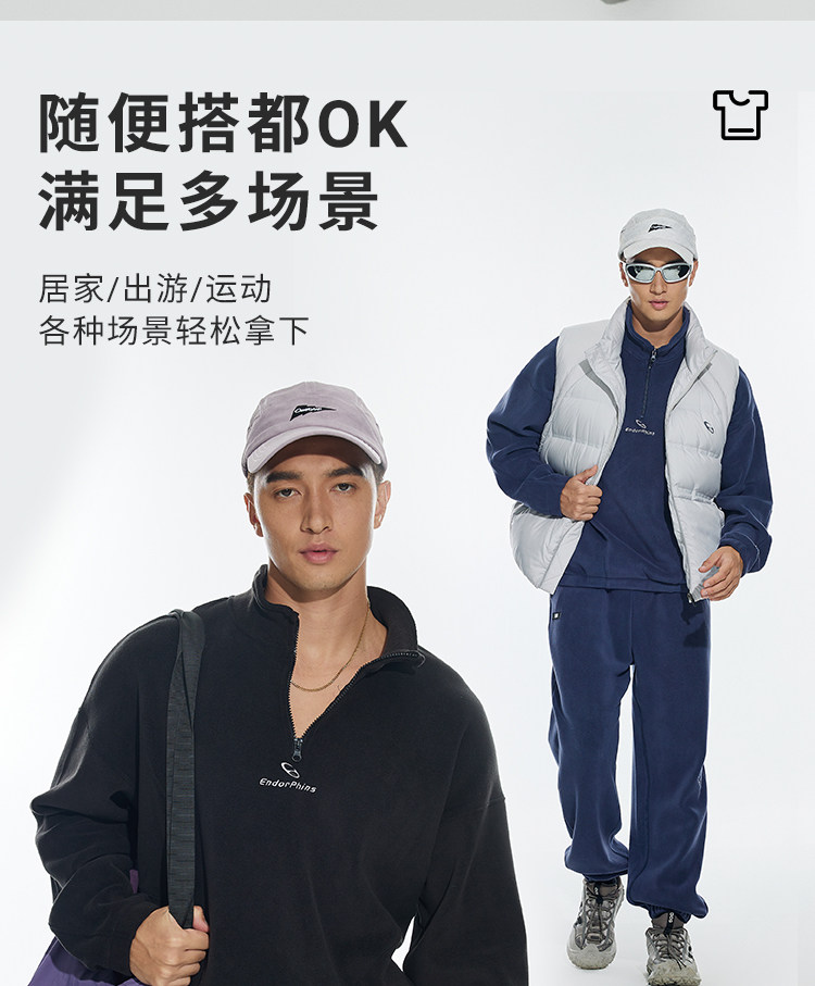 OMG运动 立领半拉链双面奥粒绒卫衣男秋冬季加绒加厚套头衫外套