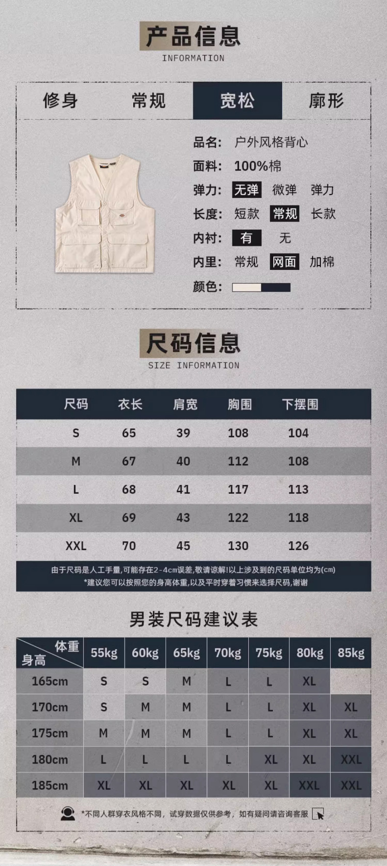 Dickies工装马甲男休闲多口袋城市机能休闲宽松风格背心 DK013072
