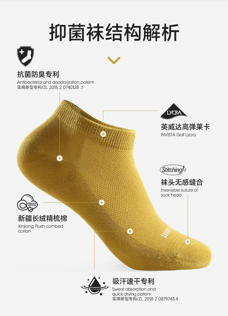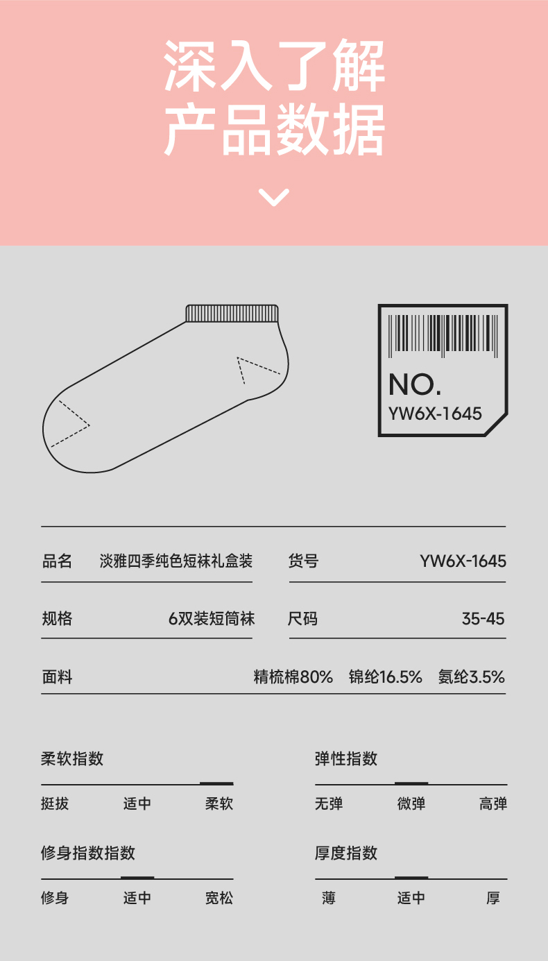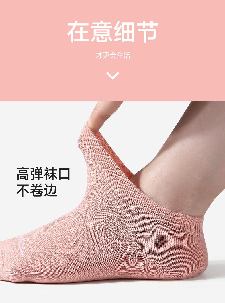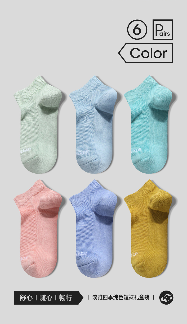 隐形盾 抗菌防臭吸汗速干休闲日常甜美短款女士袜子6双装