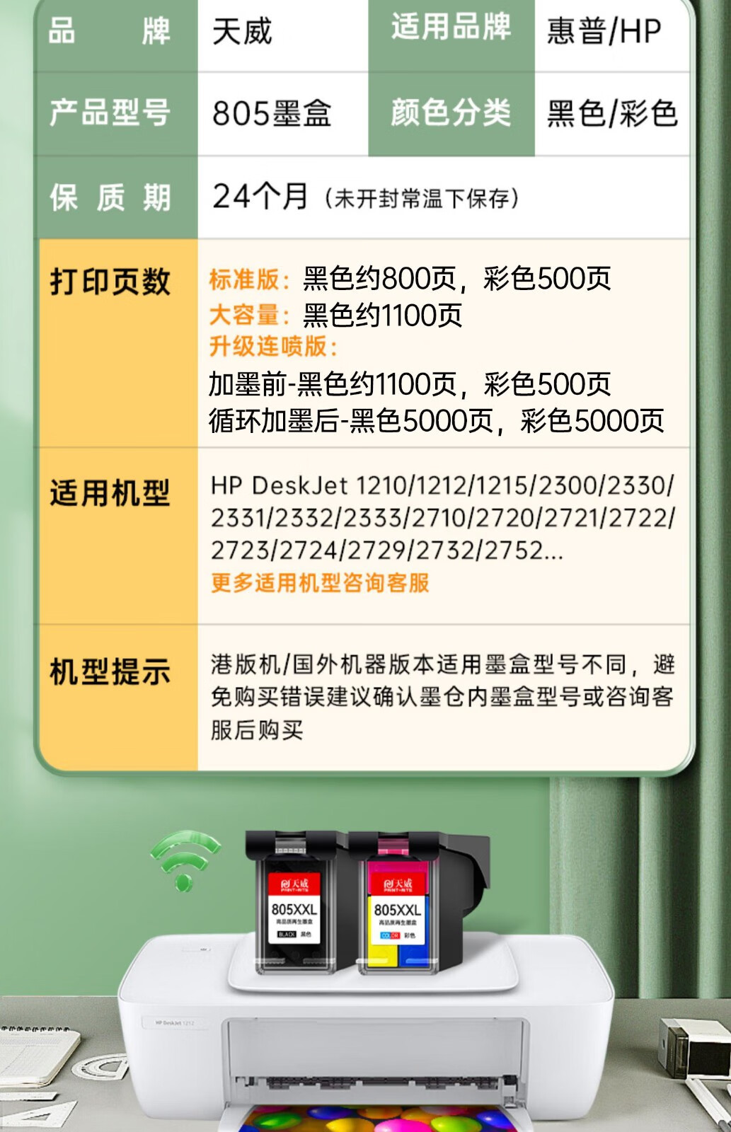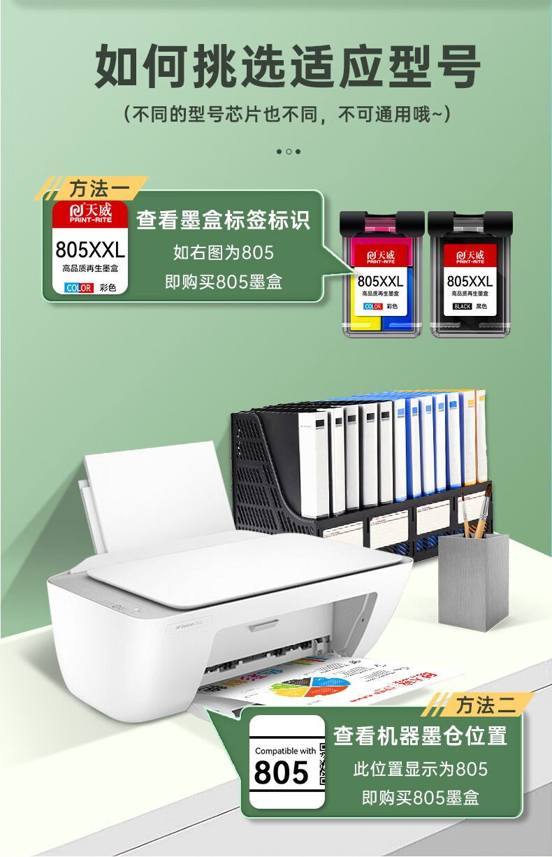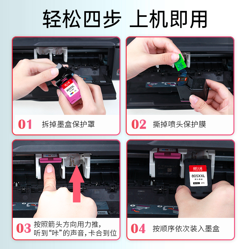 天威805墨盒 黑彩套装 适用惠普HP Deskjet 1210 1212 2330 2332 2720 2721 2722 2723 2731打印机墨盒墨水