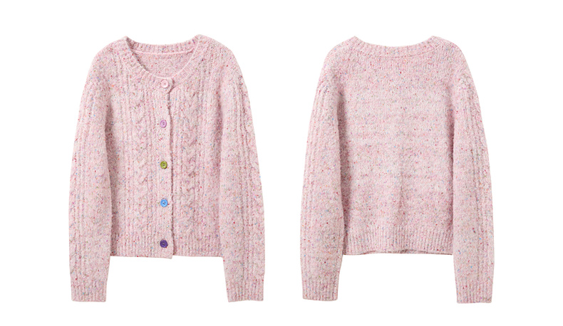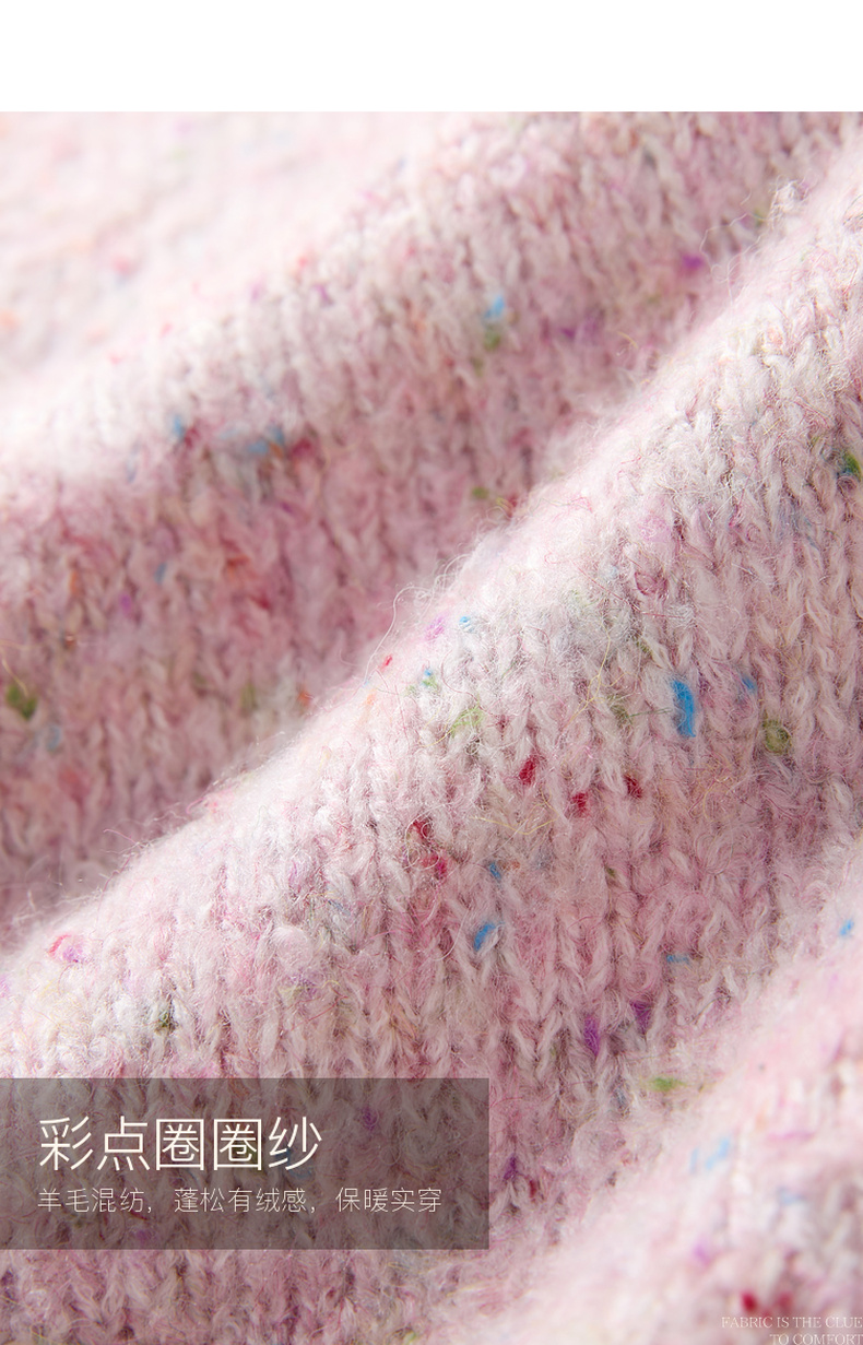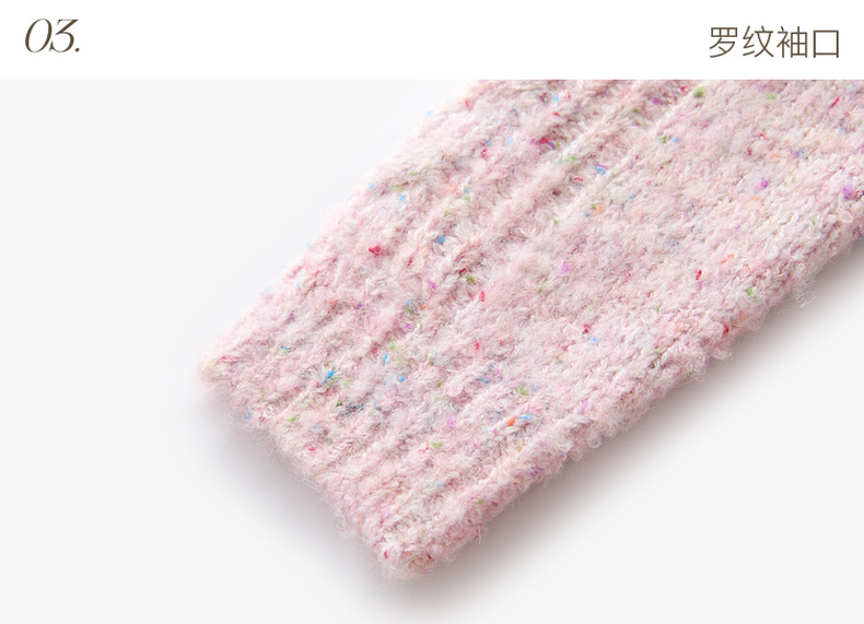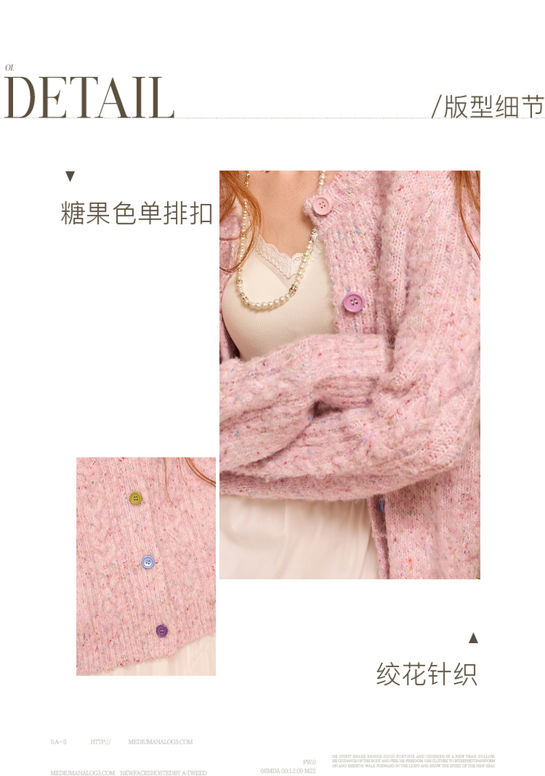 三彩2025冬季新款圆领长袖绞花针织衫宽松花纱开衫外套M