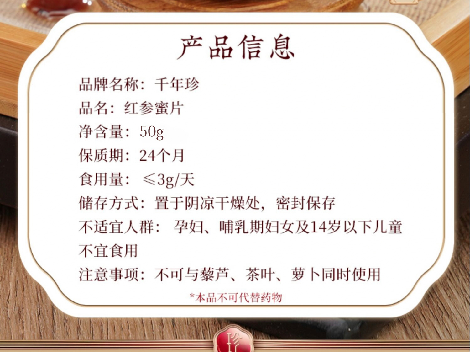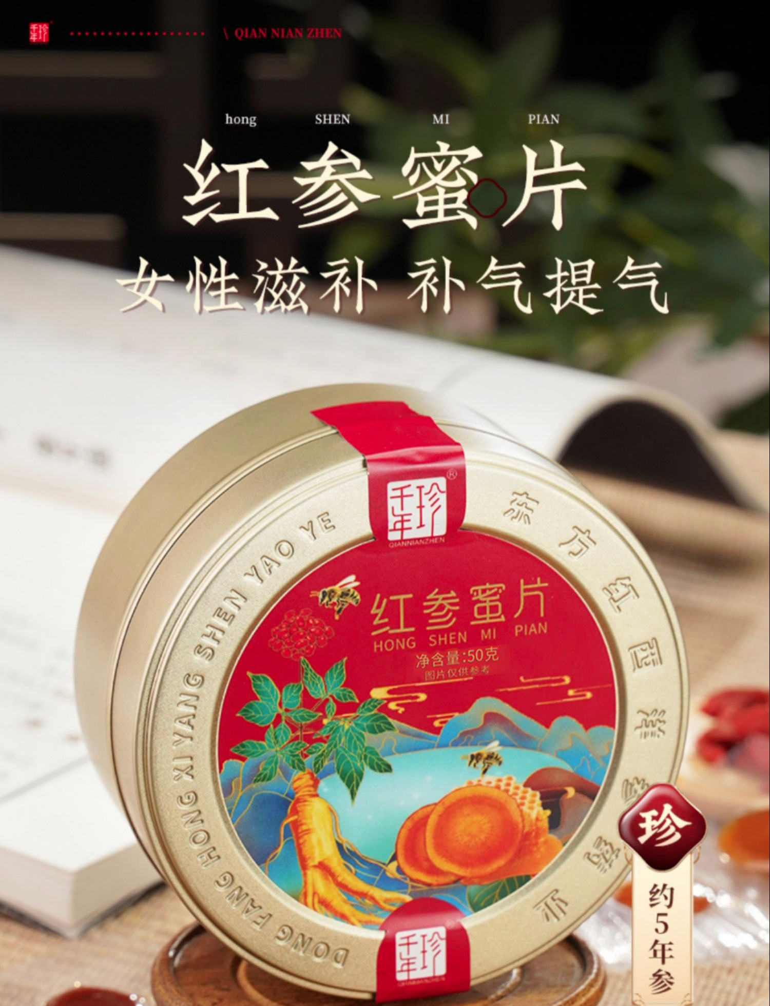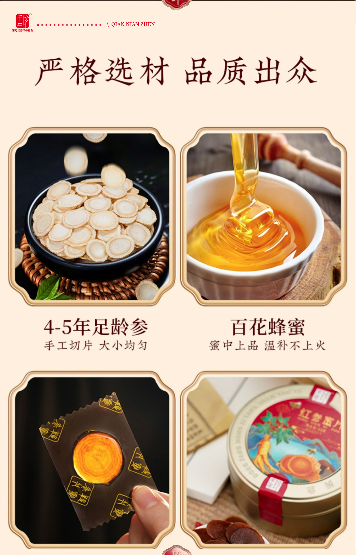 千年珍长白山S级红参蜜片非高丽参片50g/盒