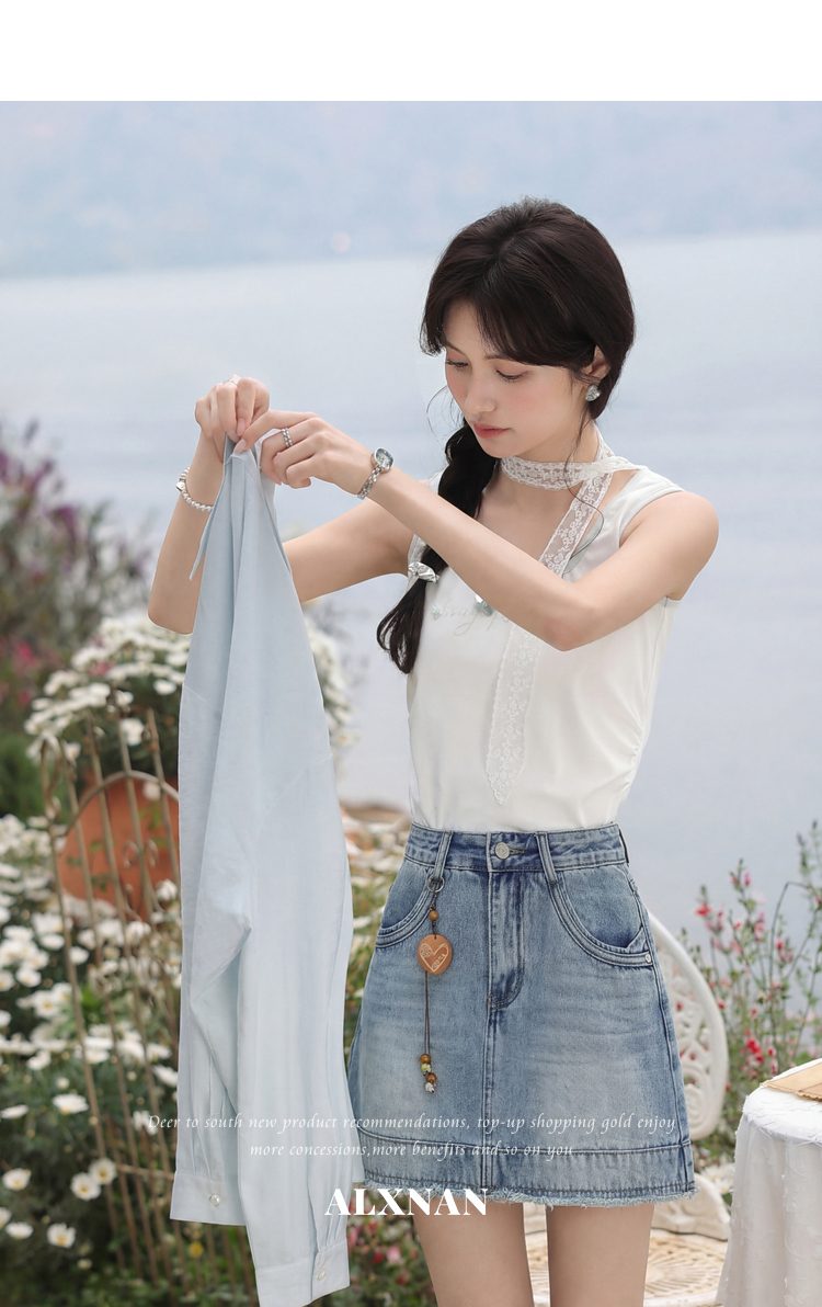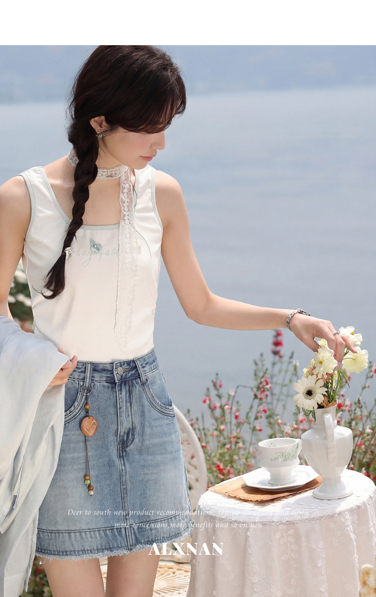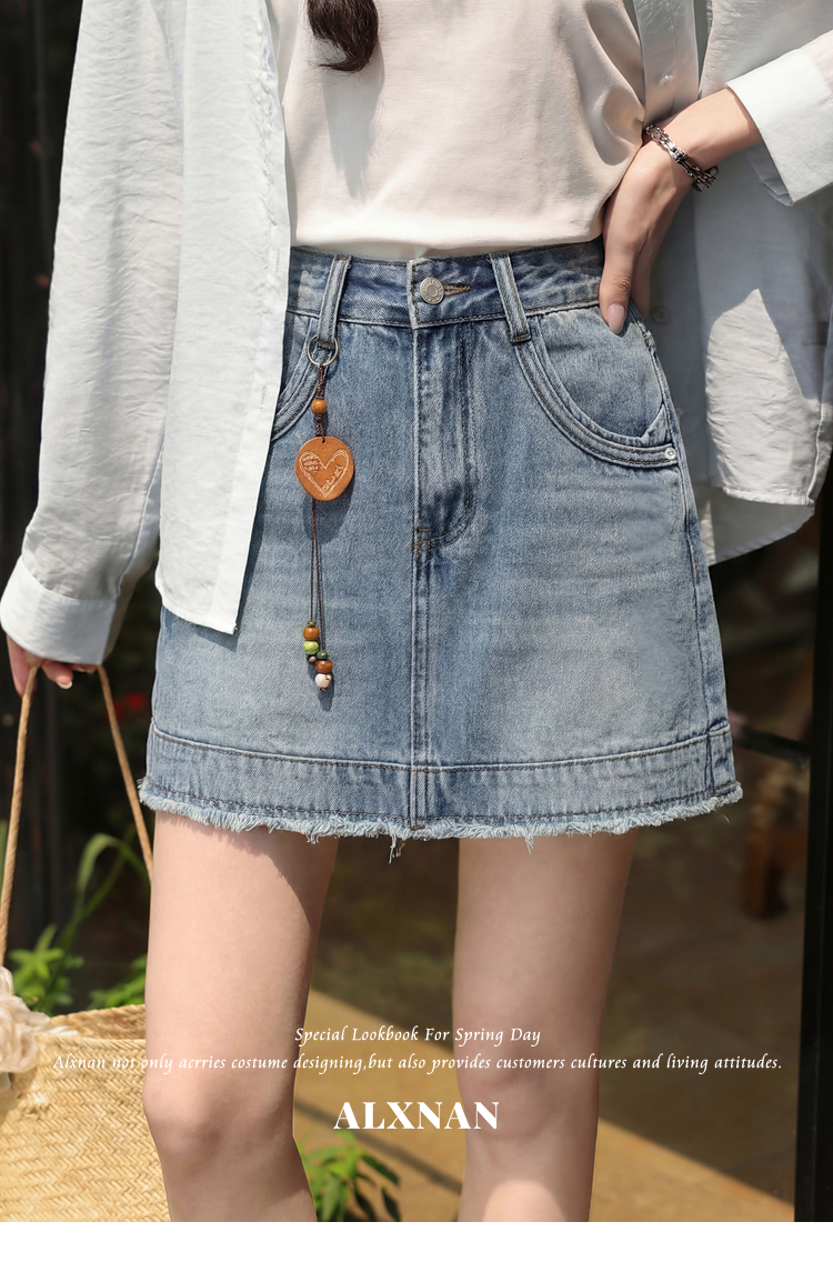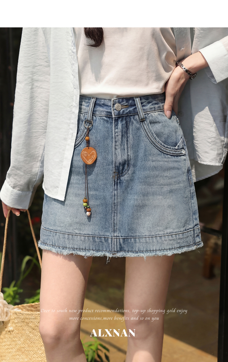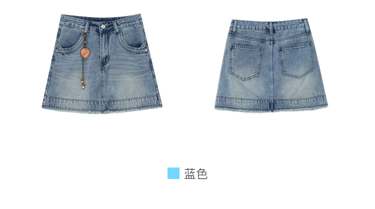 鹿向南「夏风漫屿」复古蓝色牛仔半身裙女夏新款高腰显瘦A字短裙