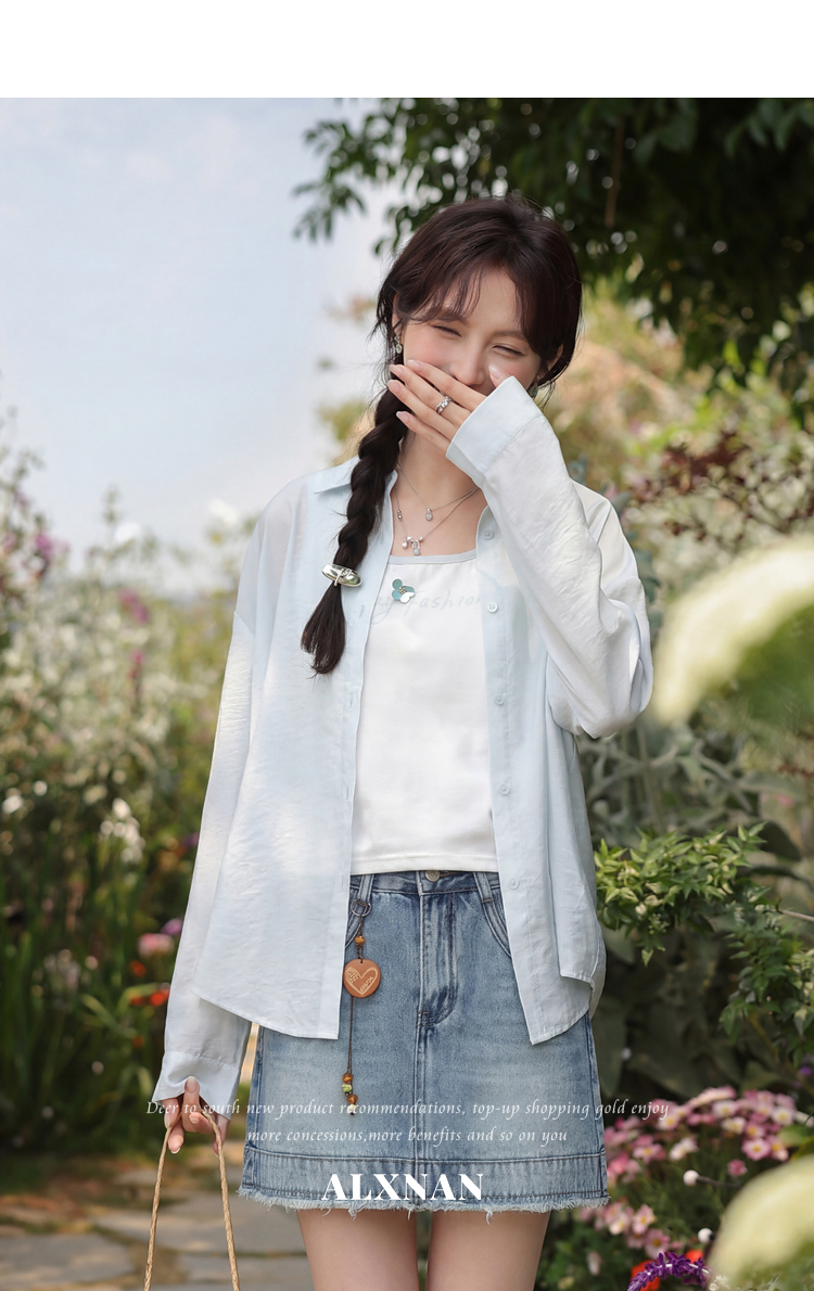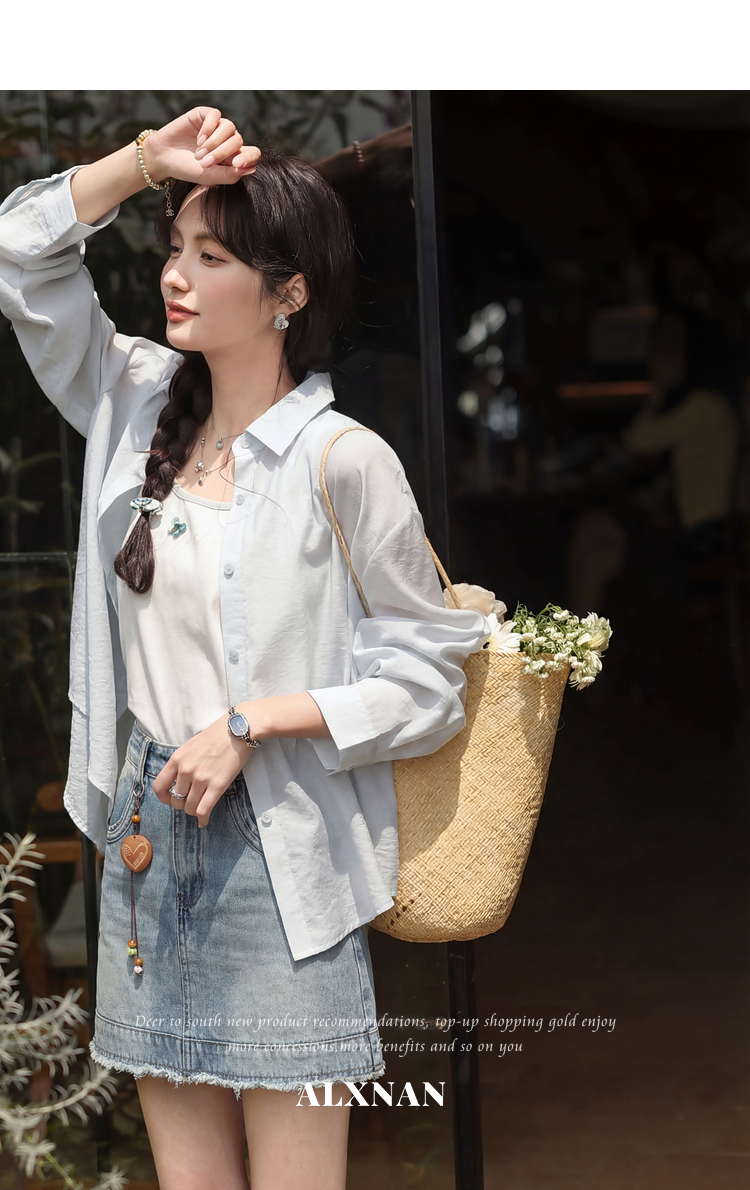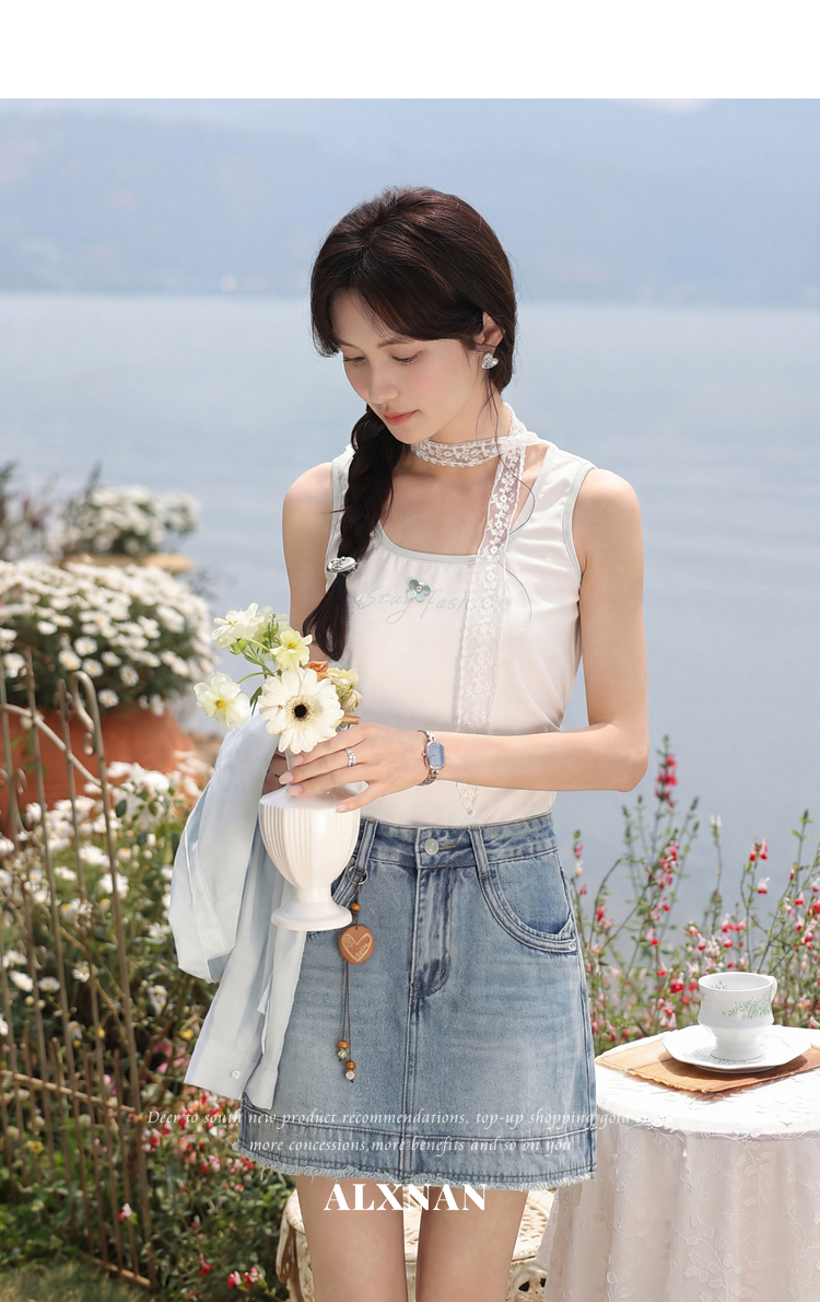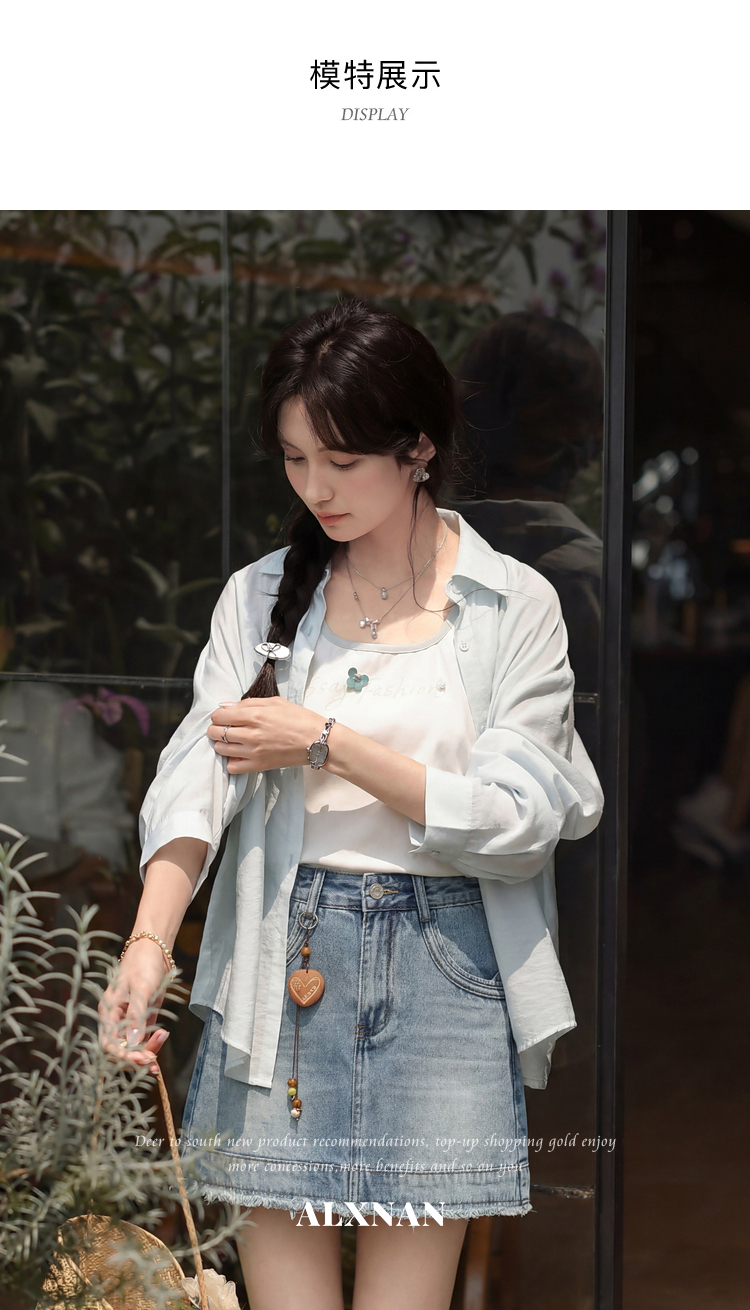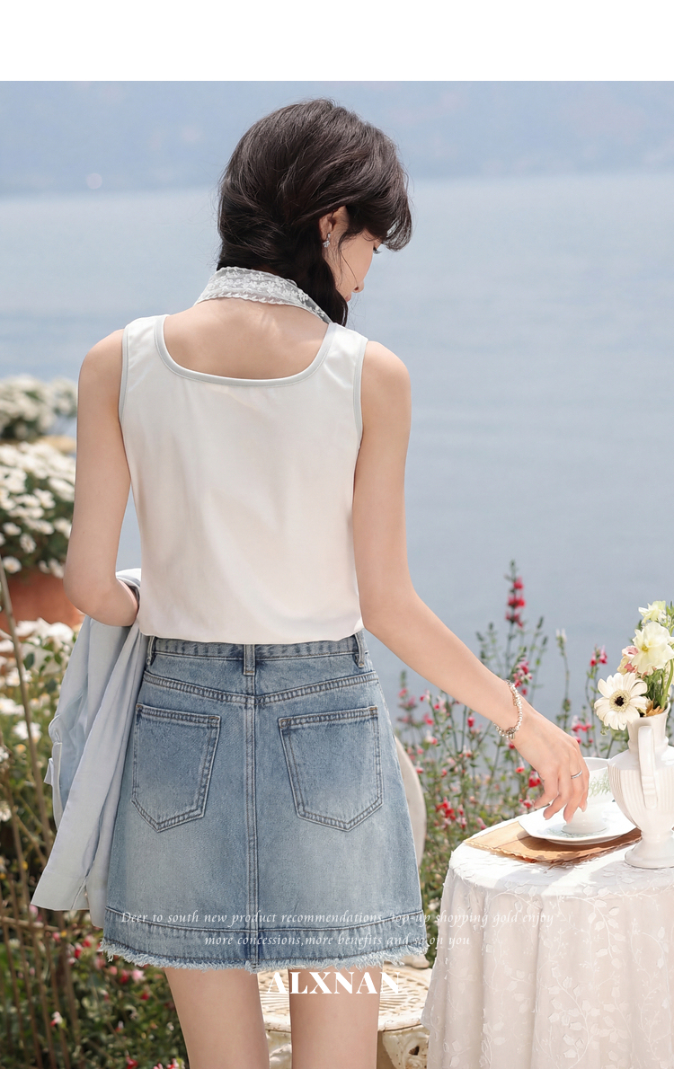 鹿向南「夏风漫屿」复古蓝色牛仔半身裙女夏新款高腰显瘦A字短裙