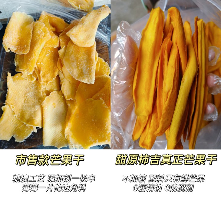 ✅ 与市售不一样!不加糖也很香! 传统芒果干表面撒满糖霜!这款芒果干不一样! 不过分酸,不过分甜,干净又清爽! TA自带熟芒奶香 每分酸甜都来自鲜芒果本身🥭