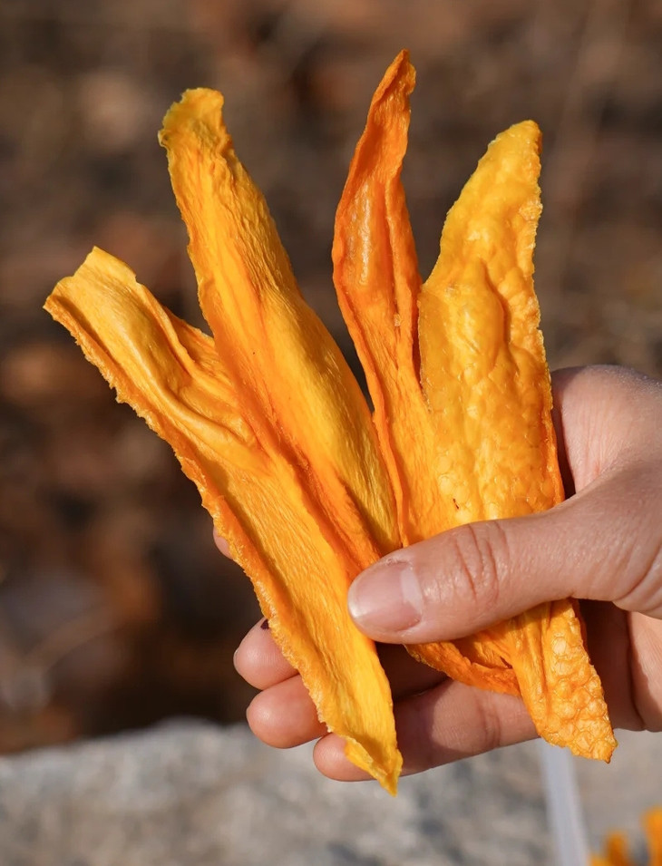 原来小时候芒果干都吃错了啊啊啊啊!! 真正的芒果干开袋就闻到一股自带的奶香🥰 入口哏啾啾 嚼劲十足 芒果的香甜由内而外散发 完全不加糖 不加防腐剂 不加一点点科技狠活 无糖 无油✅用树上熟透、软糯的芒果🥭 十几斤鲜果才做成一斤芒果干👍 原果厚切 保持了芒果的原汁原味 每一口都很厚实!!! 纯纯的芒果香 不会太甜 不酸 只有芒果醇厚浓香 带着芒果特有的纤维感 超有嚼劲 不软烂🤭