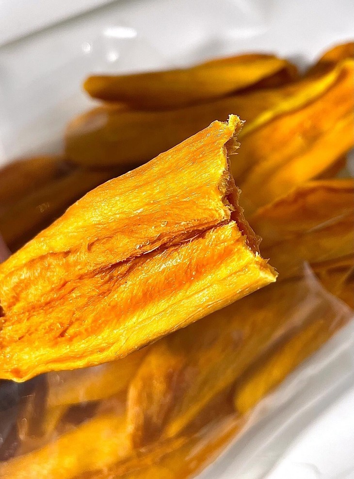 ⭕自然成熟的芒果现熟、现切、现烤 而且都是那种对半切的大块果肉制成 不是边角料❗所有的果香味 甜味都来自芒果本身 ❌什么杂乱添加都没有 不会像其他乱七八糟的芒果干那样 这就是简简单单芒果的样子 比鲜芒果还好吃 软中带韧 还不脏手✌🏻