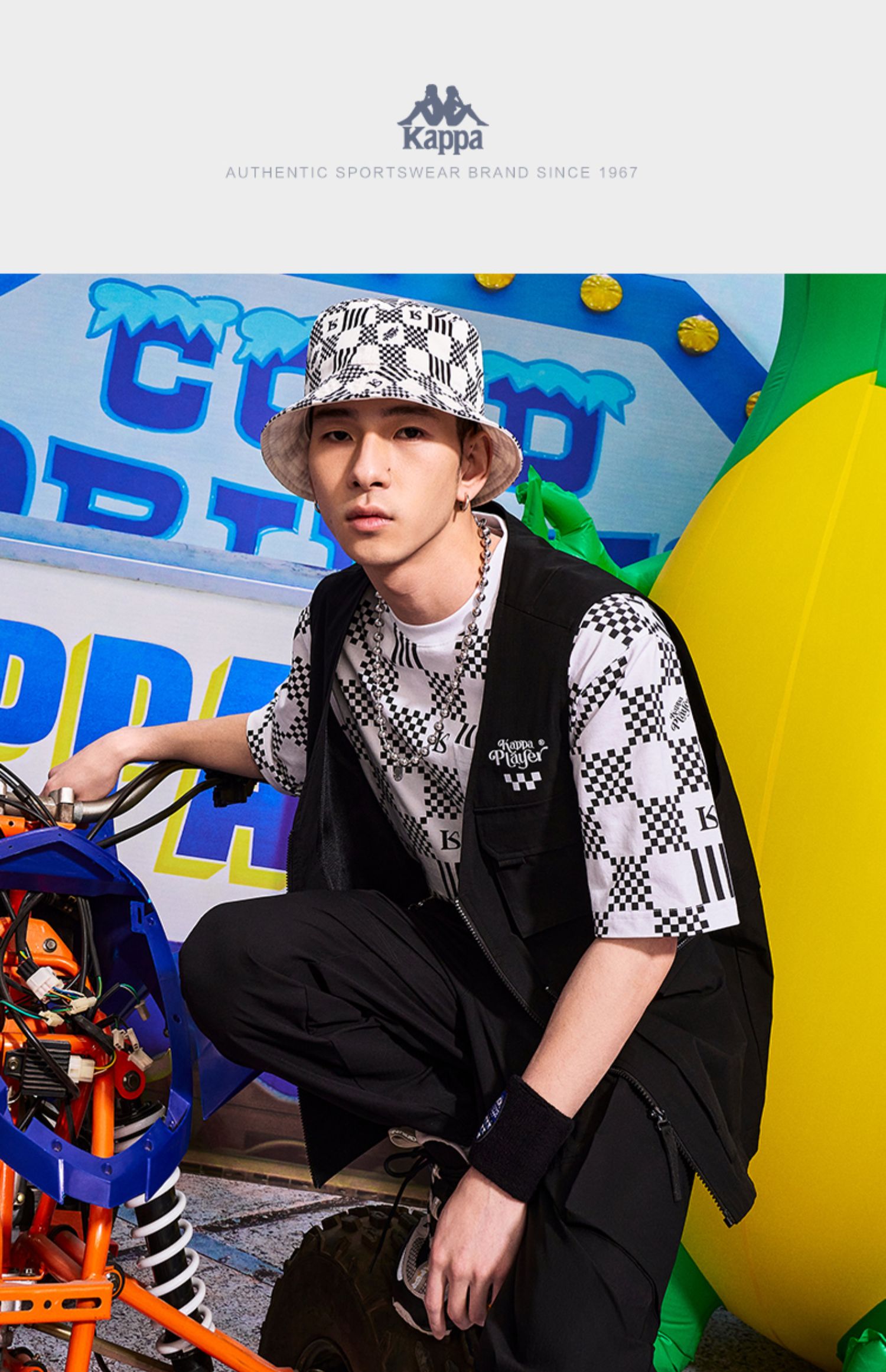 Kappa卡帕棋盘格短袖2022新款情侣男女运动T恤夏季休闲圆领半袖K0CY2TD75