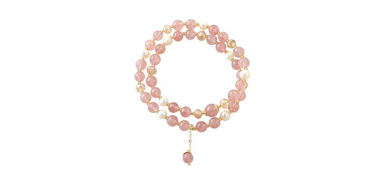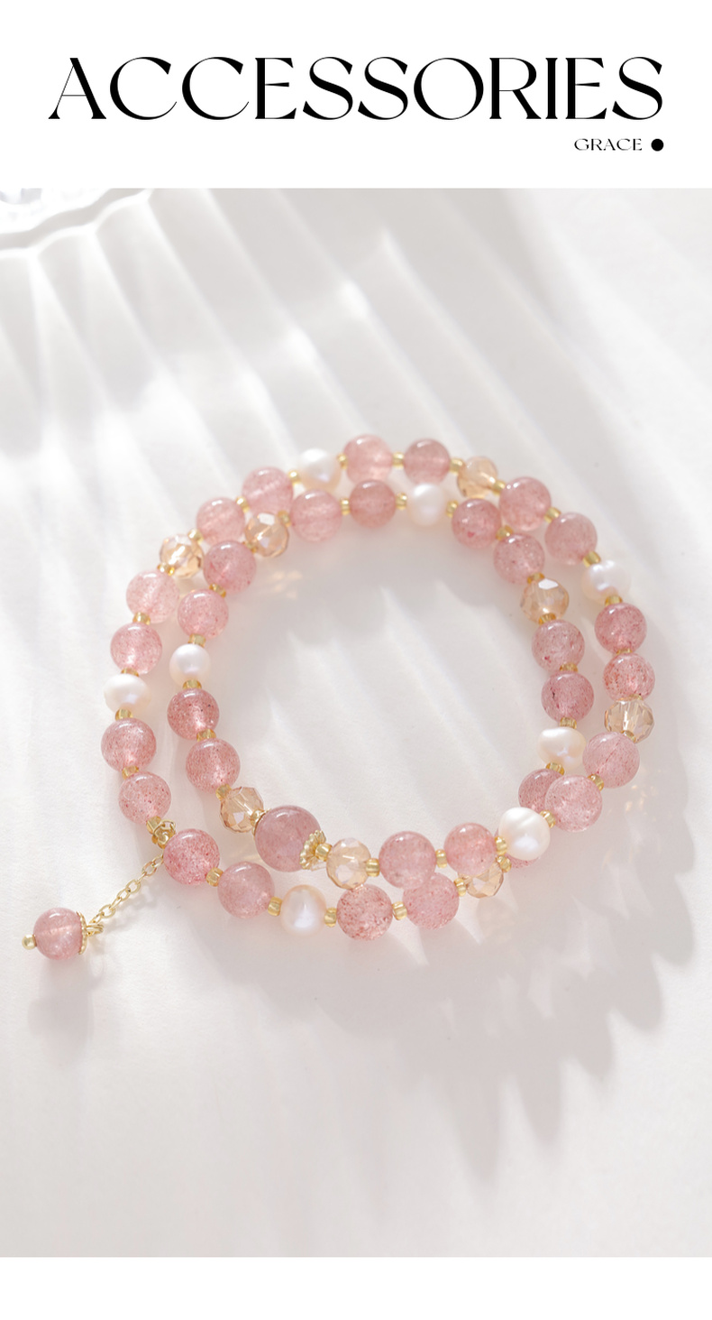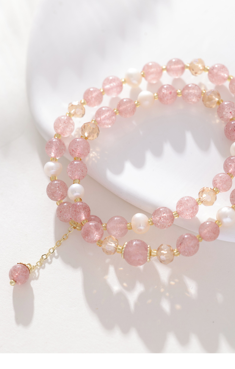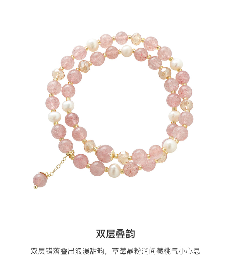 三彩2025新款温柔系双层甜美【草莓水晶珍珠】手串手链女桃花约会