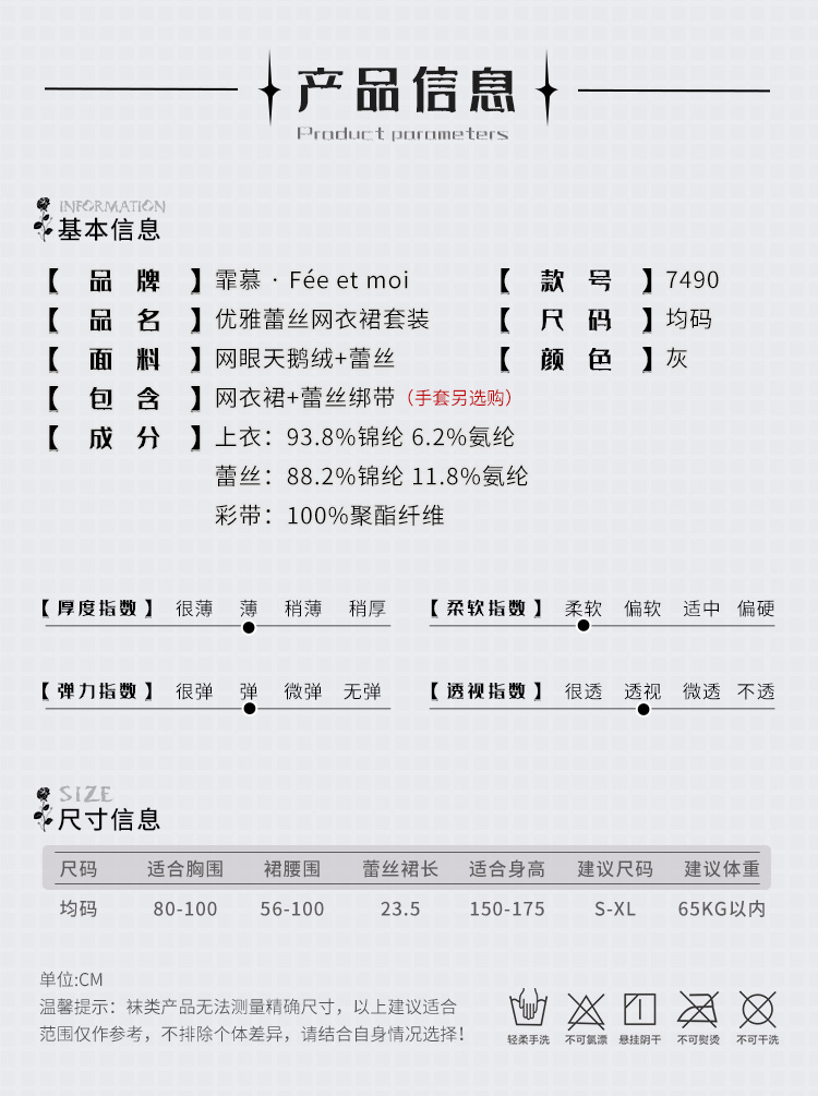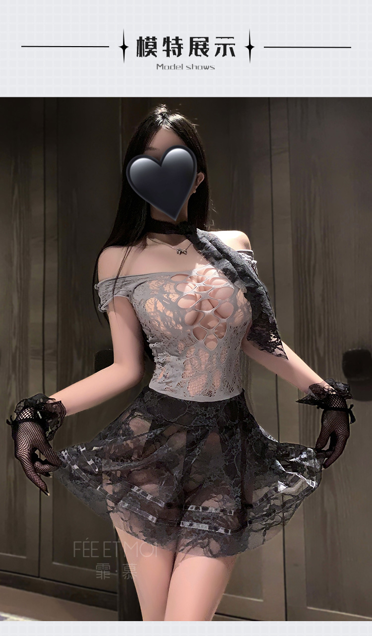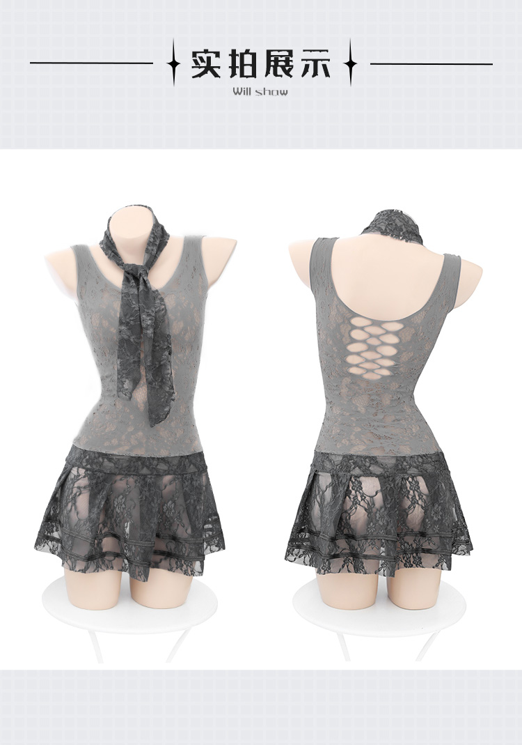 【情趣内衣】霏慕 优雅蕾丝网衣裙套装7490