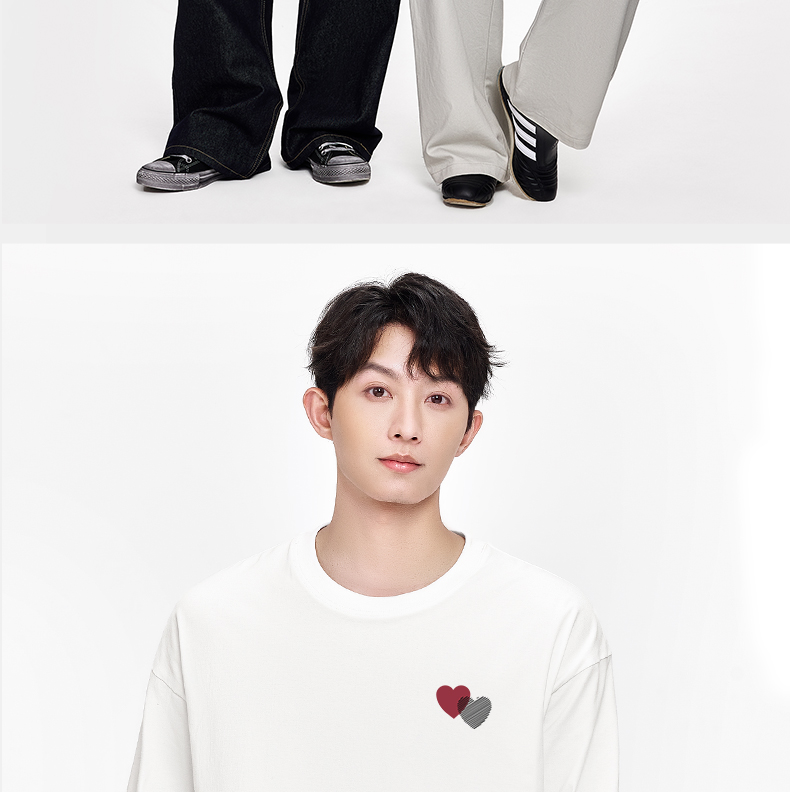 「棉的美学」极简双层爱心圆领T恤重磅纯棉情侣款小众设计长袖上衣