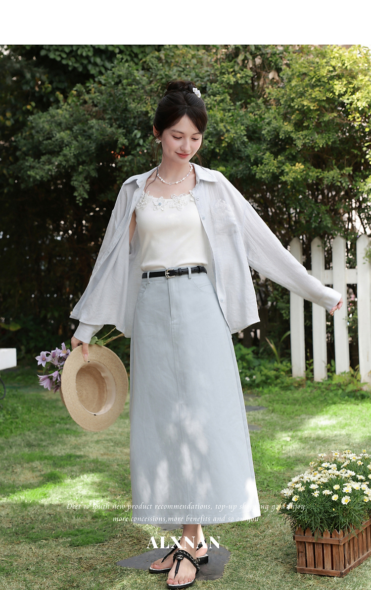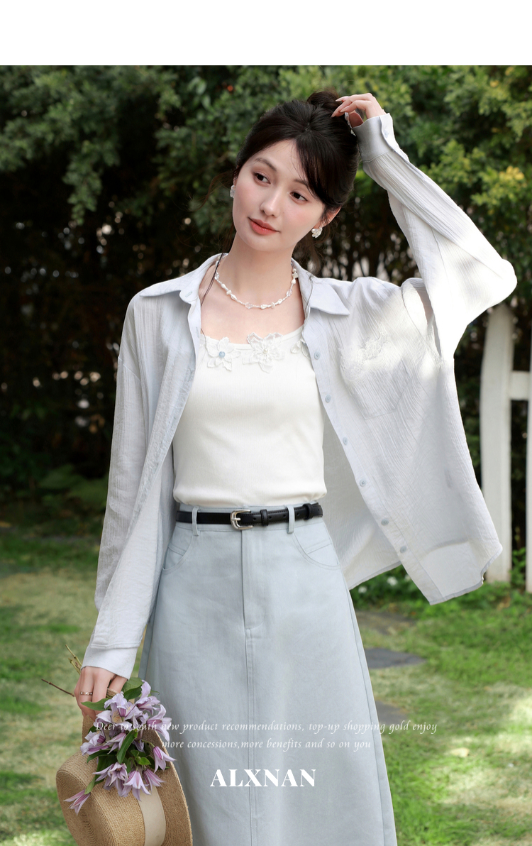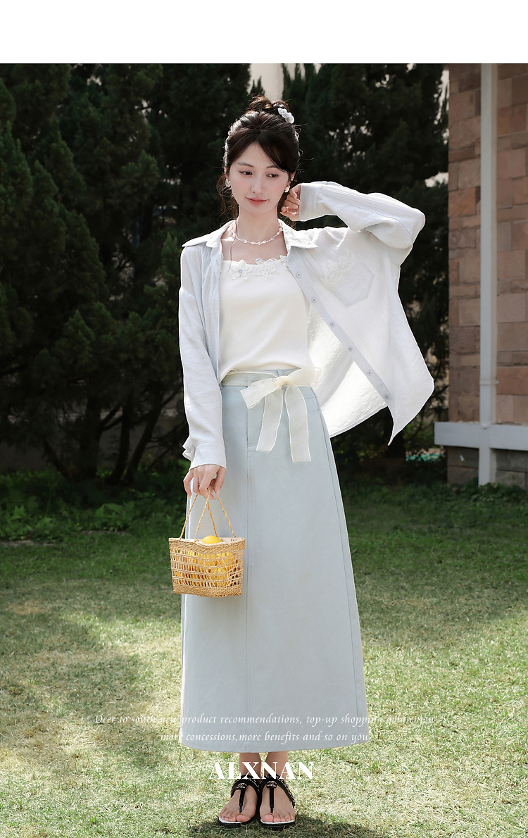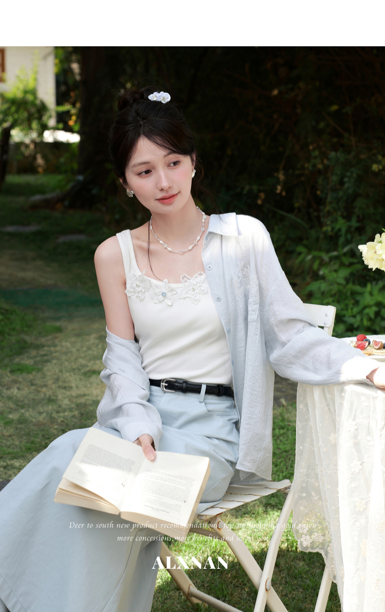 鹿向南「清冷茉莉」白色无袖吊带背心内搭女夏季新款修身短款上衣