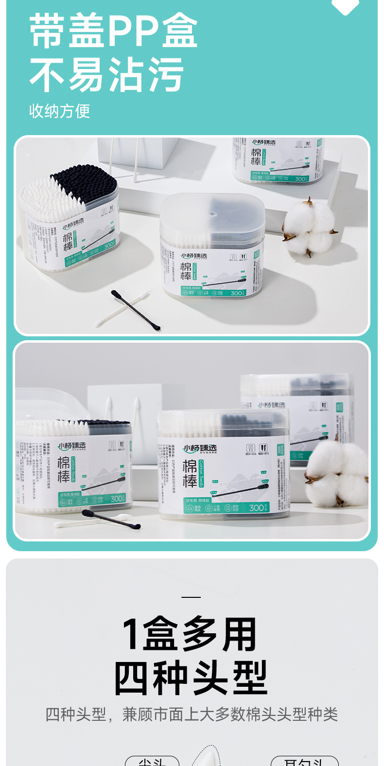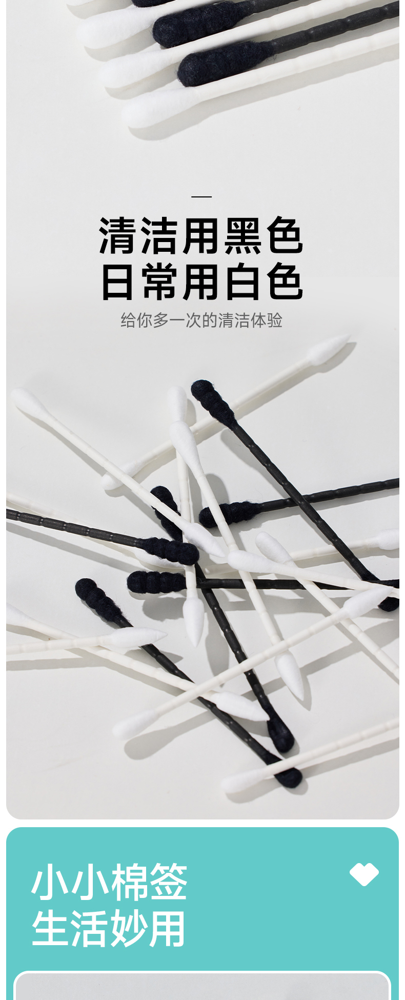 【小杨臻选】掏耳棉签黑色双头一次性挖耳勺棉花棒化妆棒