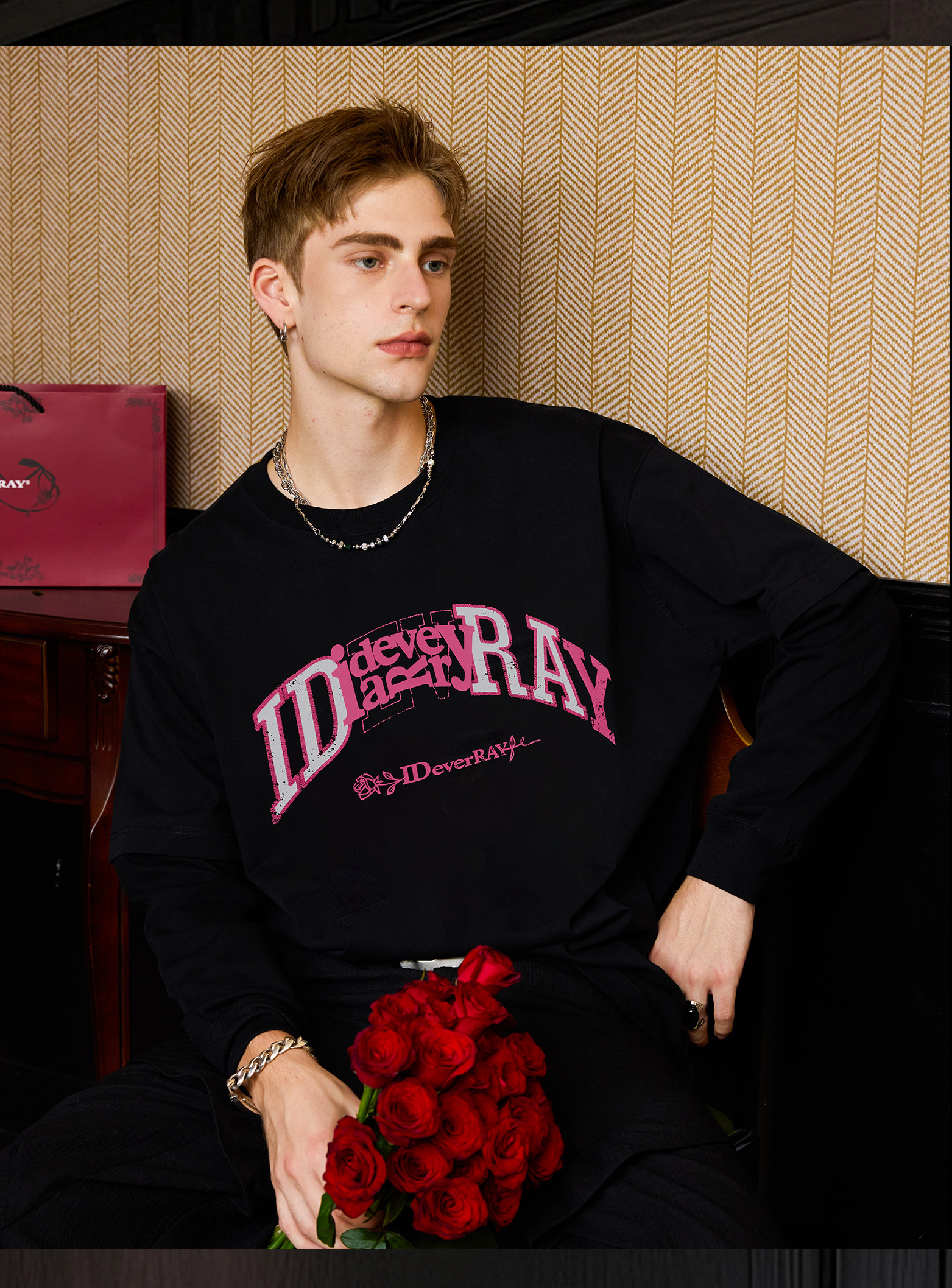 IDEVERRAY圆领秋季T恤长袖早秋新品印花字母潮薄款男女同款卫衣
