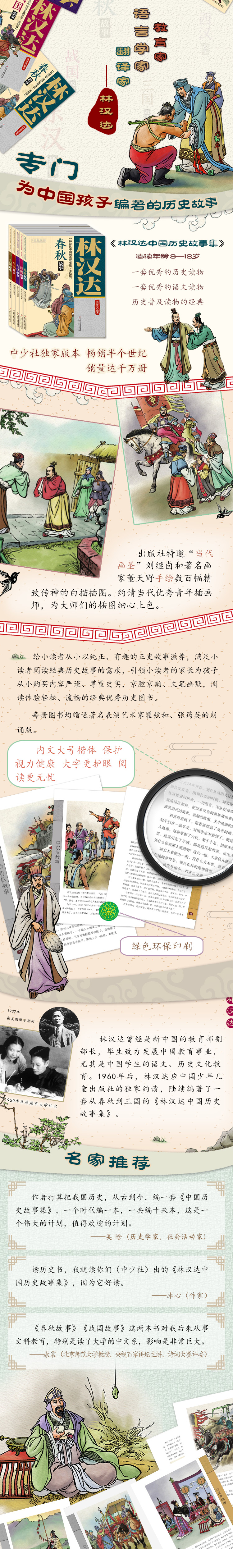 中国少年儿童出版社联手文字大师,美术界泰斗画家,珠联璧合、独家出版了一套畅销几十年的《林汉达中国历史故事集》,累积销量达到数百万册!