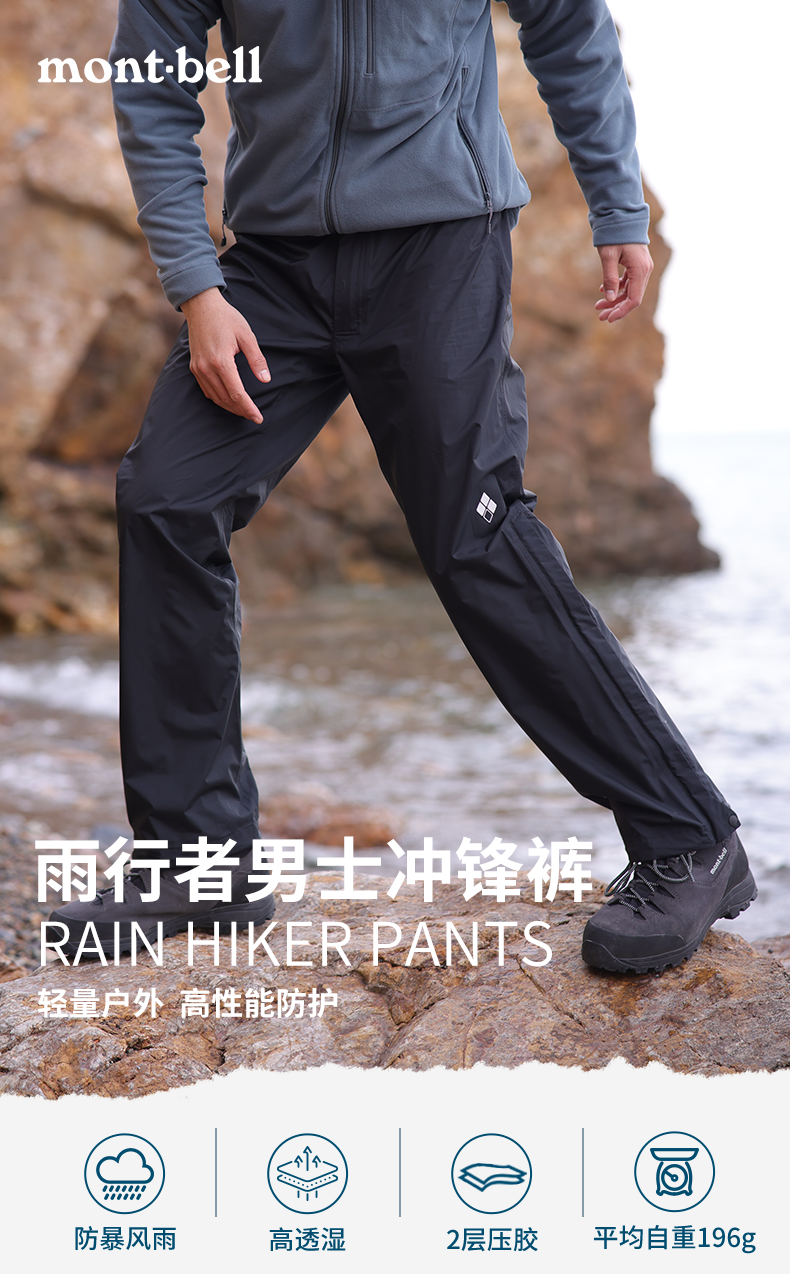 [雨行者]MONTBELL户外冲锋裤男款露营轻量防水休闲徒步硬壳裤-
