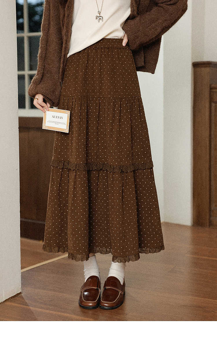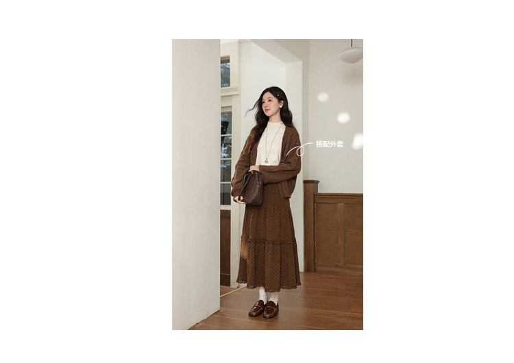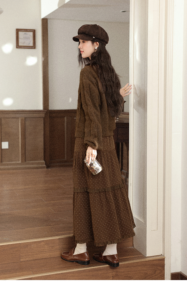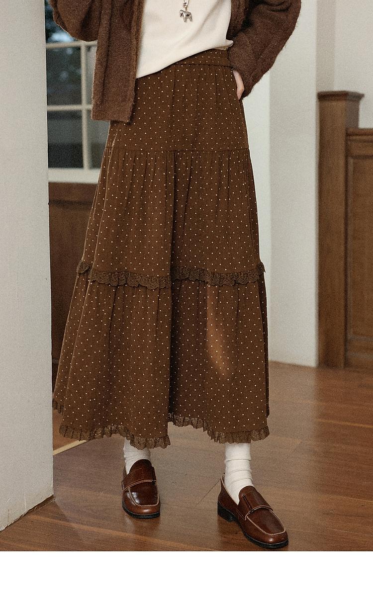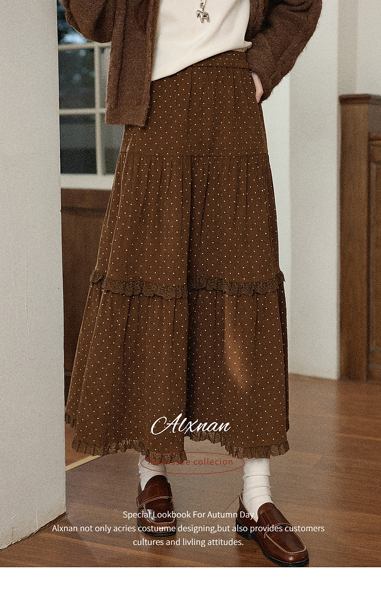 鹿向南「莫奈花园」咖色高腰半身裙女冬季波点宽松显瘦A字长裙子
