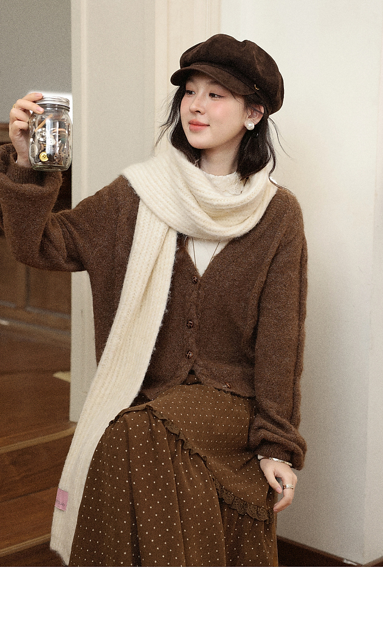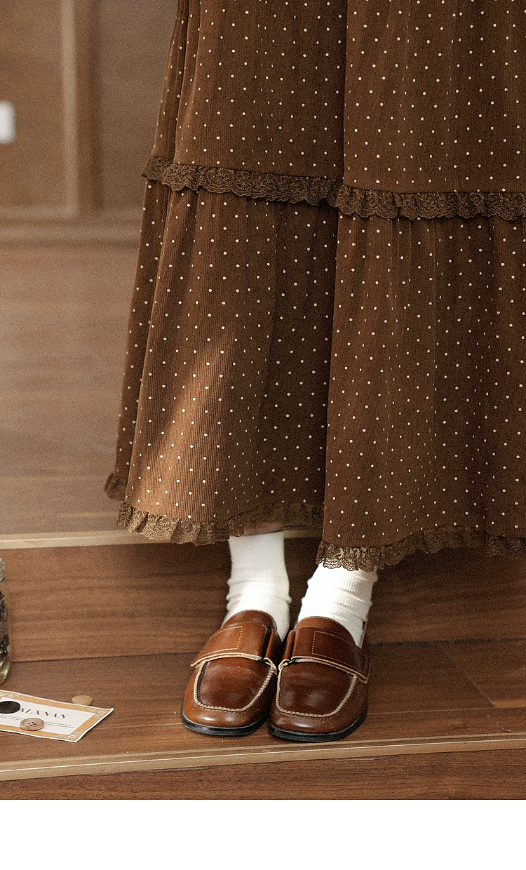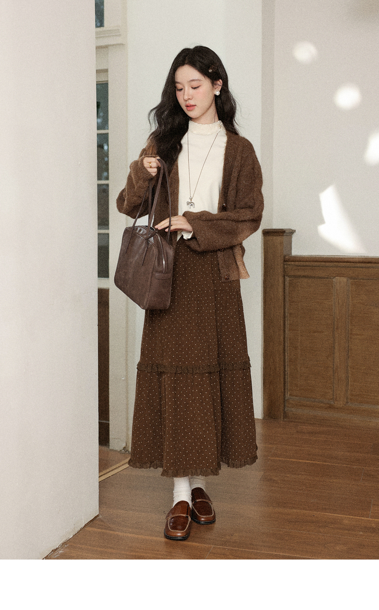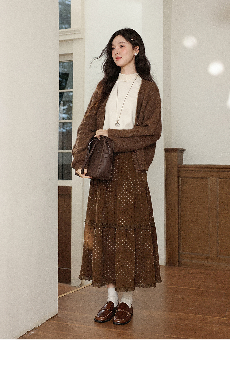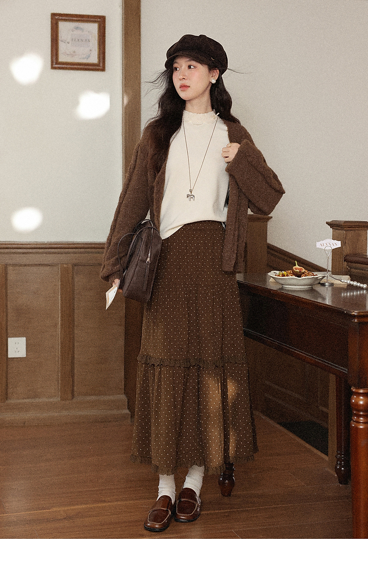 鹿向南「莫奈花园」咖色高腰半身裙女冬季波点宽松显瘦A字长裙子