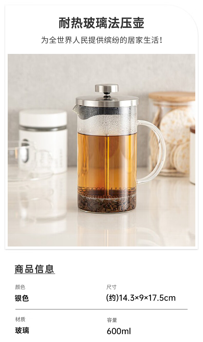 耐热玻璃法压壶 600ml R600