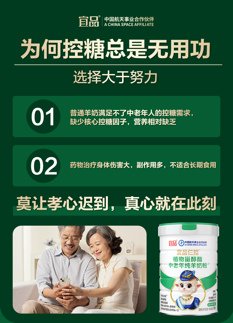 【关爱糖尿三高】宜品仨控 纯羊奶粉成人中老年高钙蛋白富硒