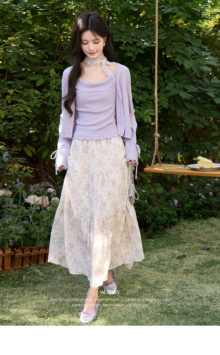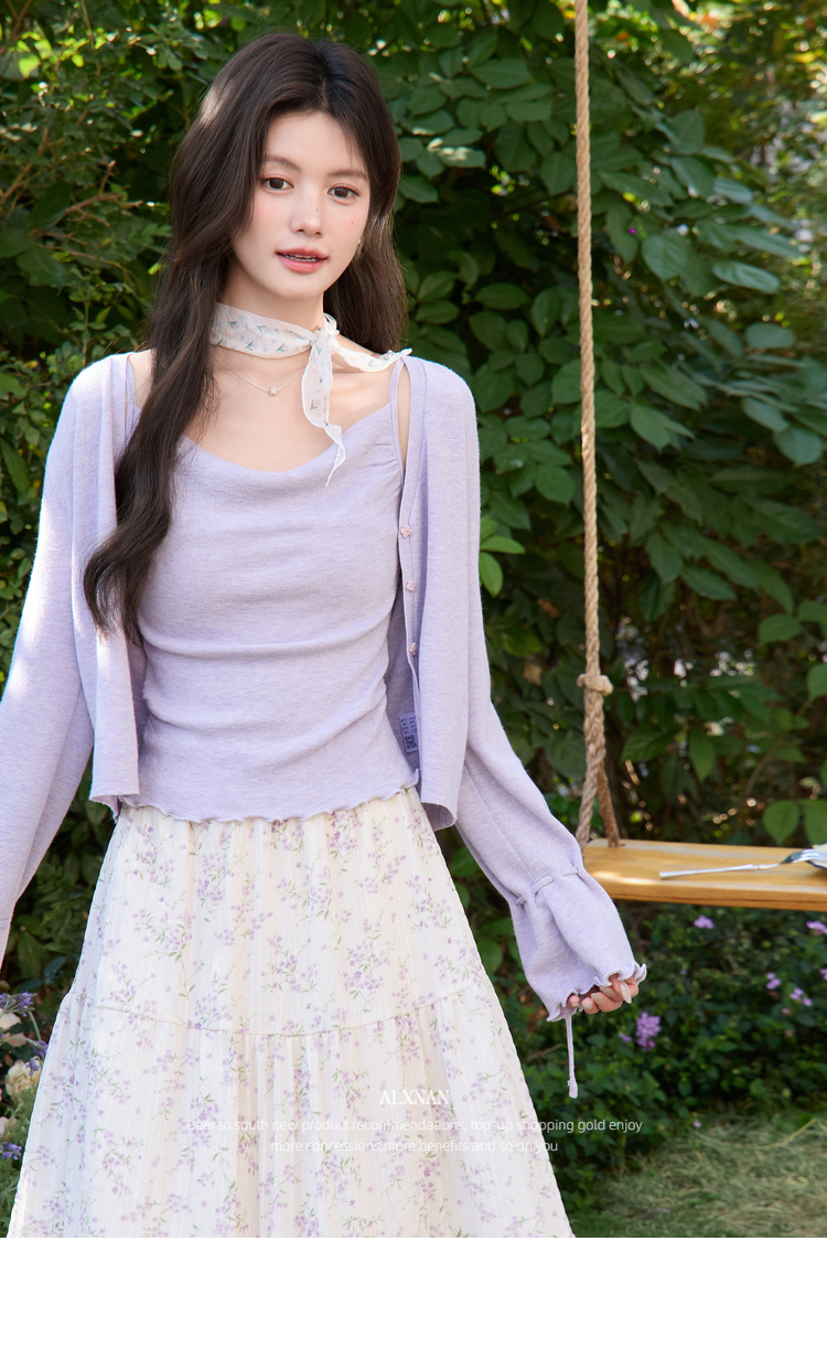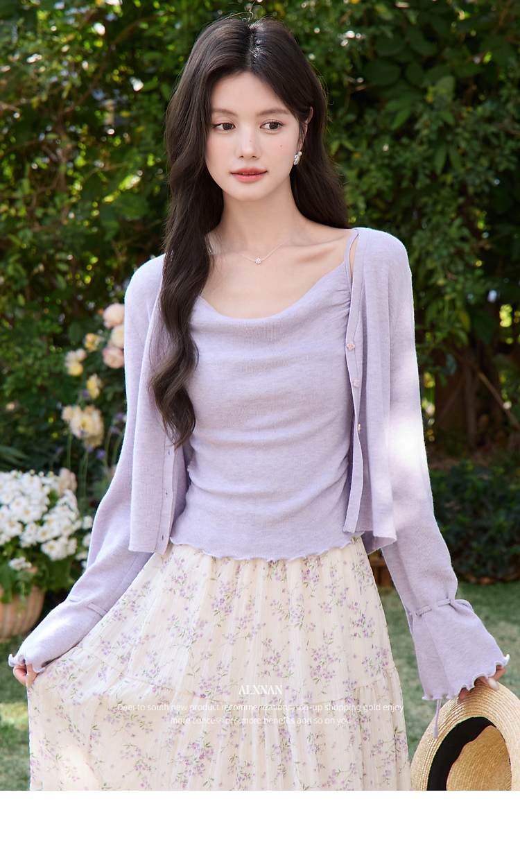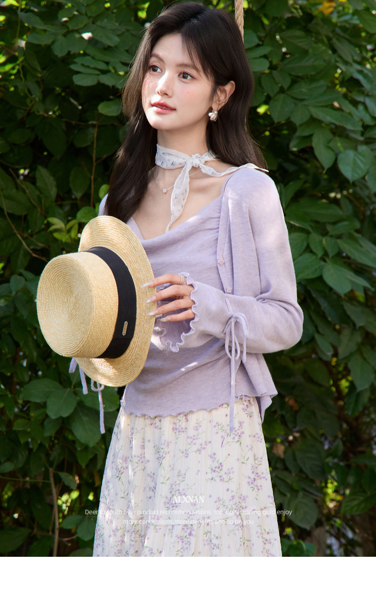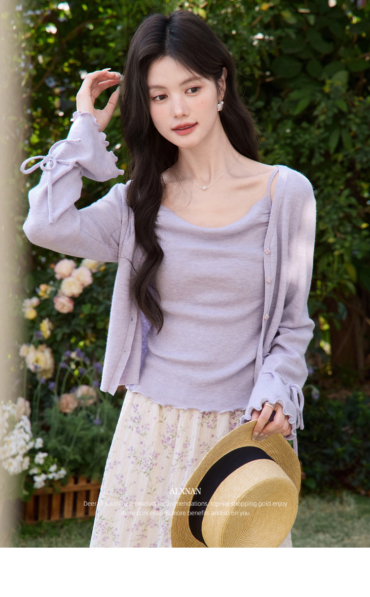 鹿向南「鸢紫花开」紫色针织衫时尚百搭短款背心
