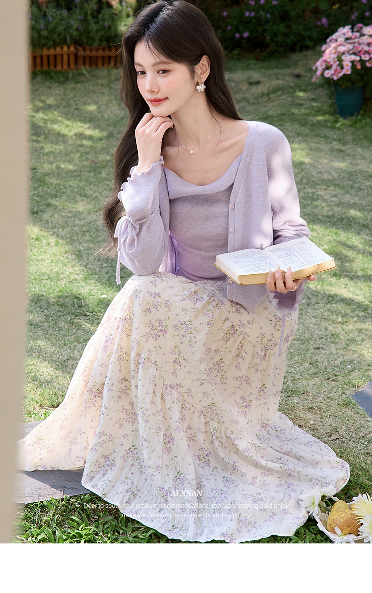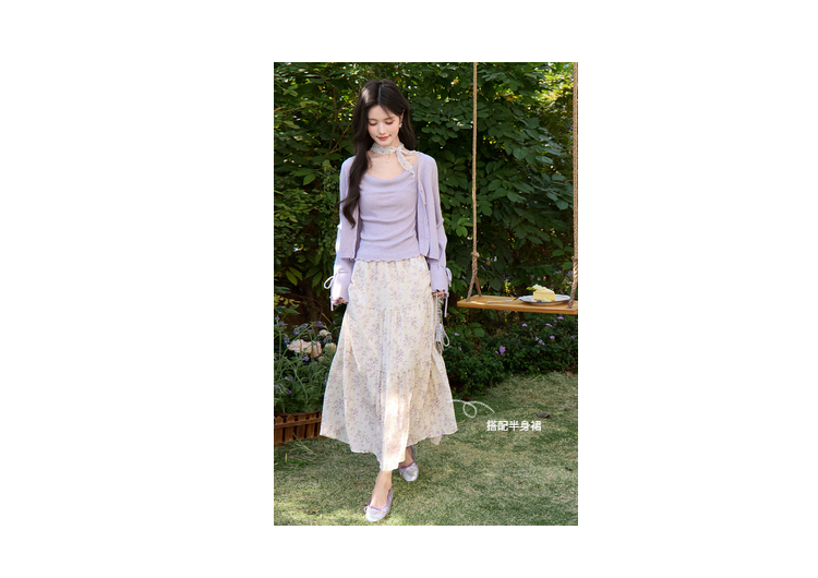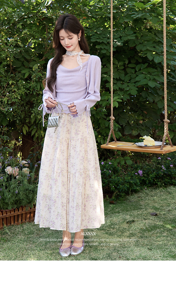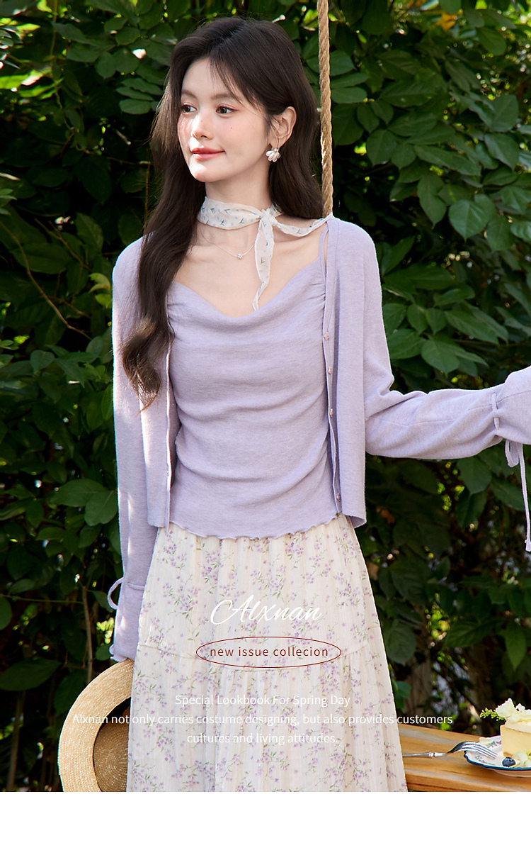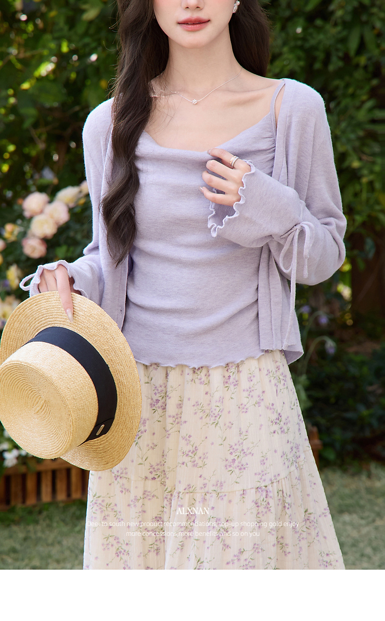 鹿向南「鸢紫花开」紫色针织衫时尚百搭短款背心