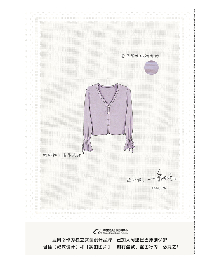 鹿向南「雾蓝花信」法式气质蓝色针织衫女春季高级慵懒感罩衫上衣