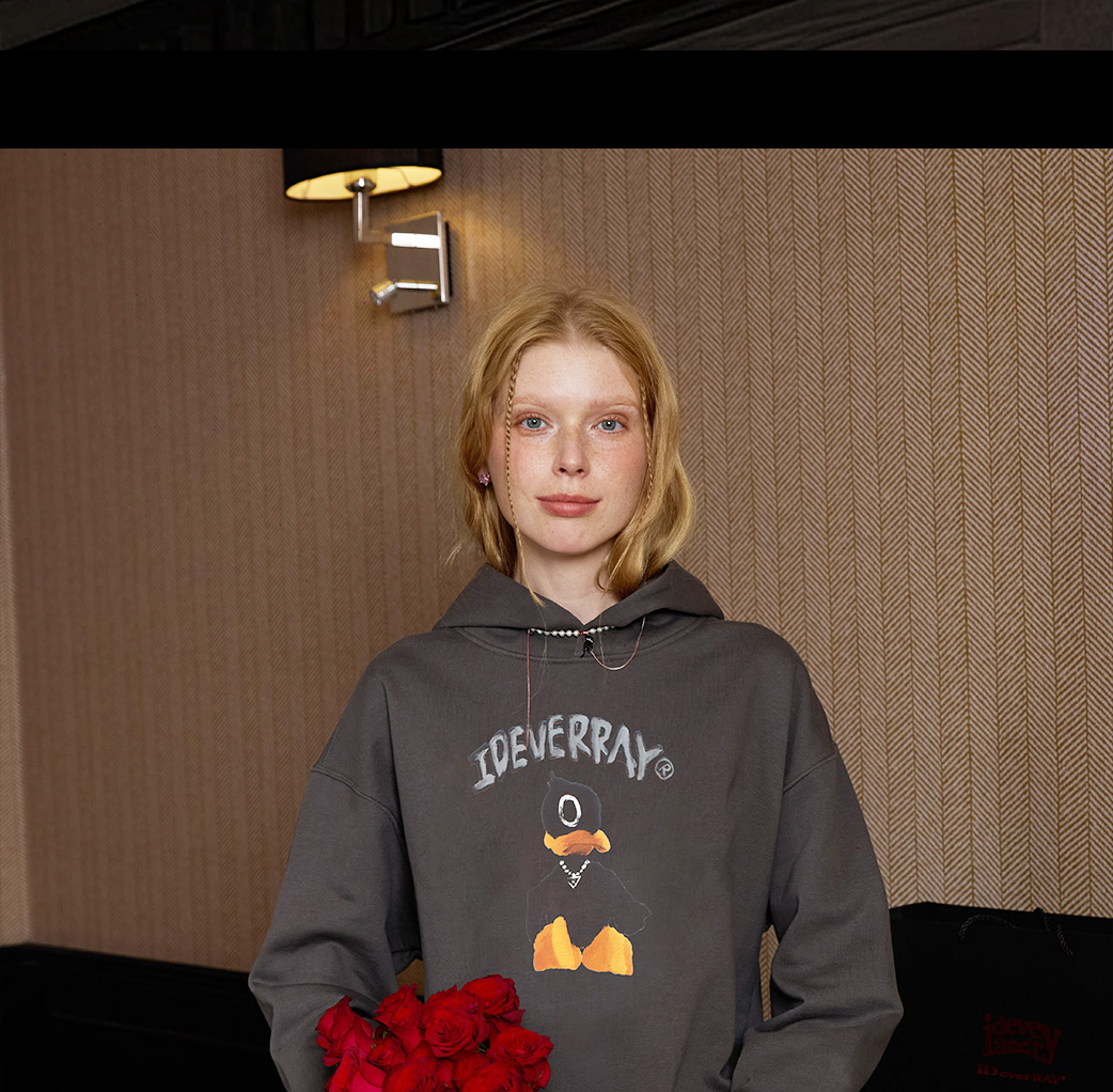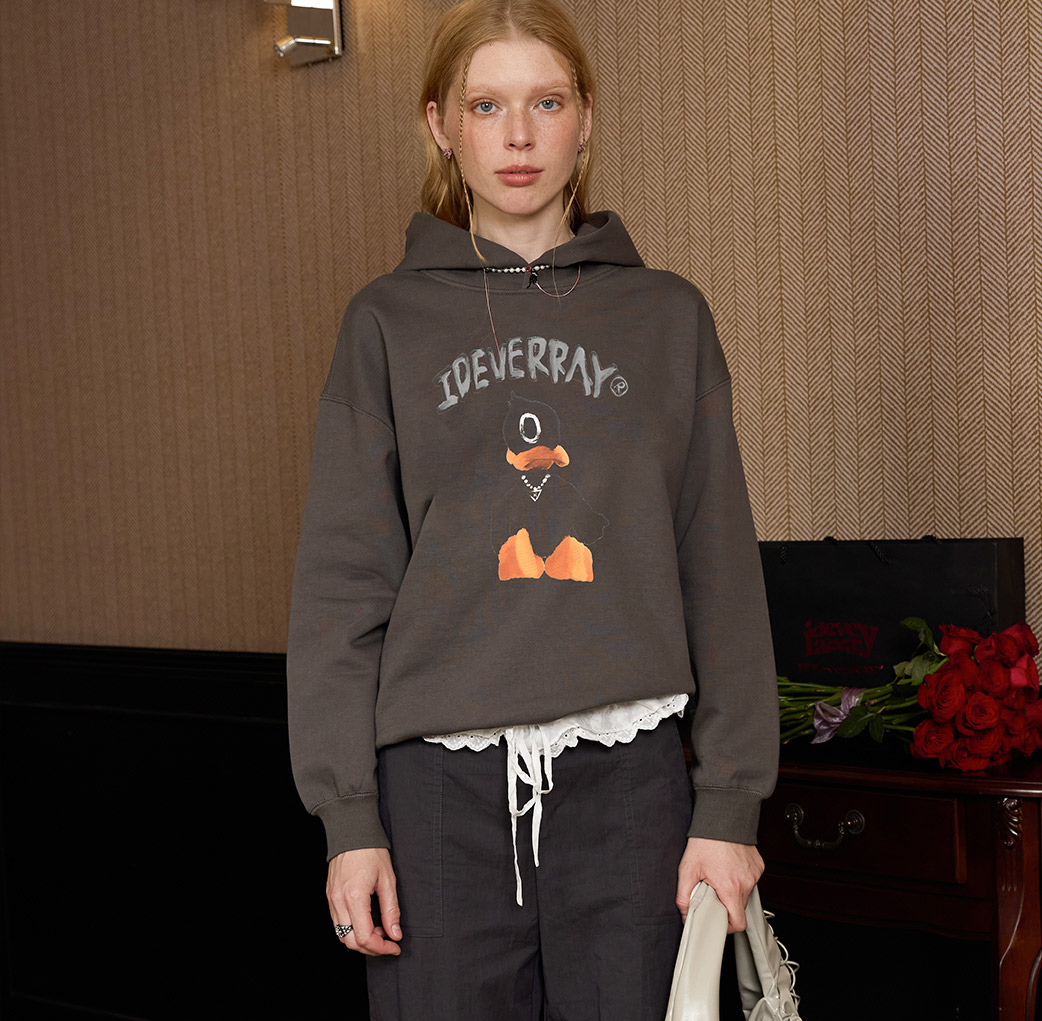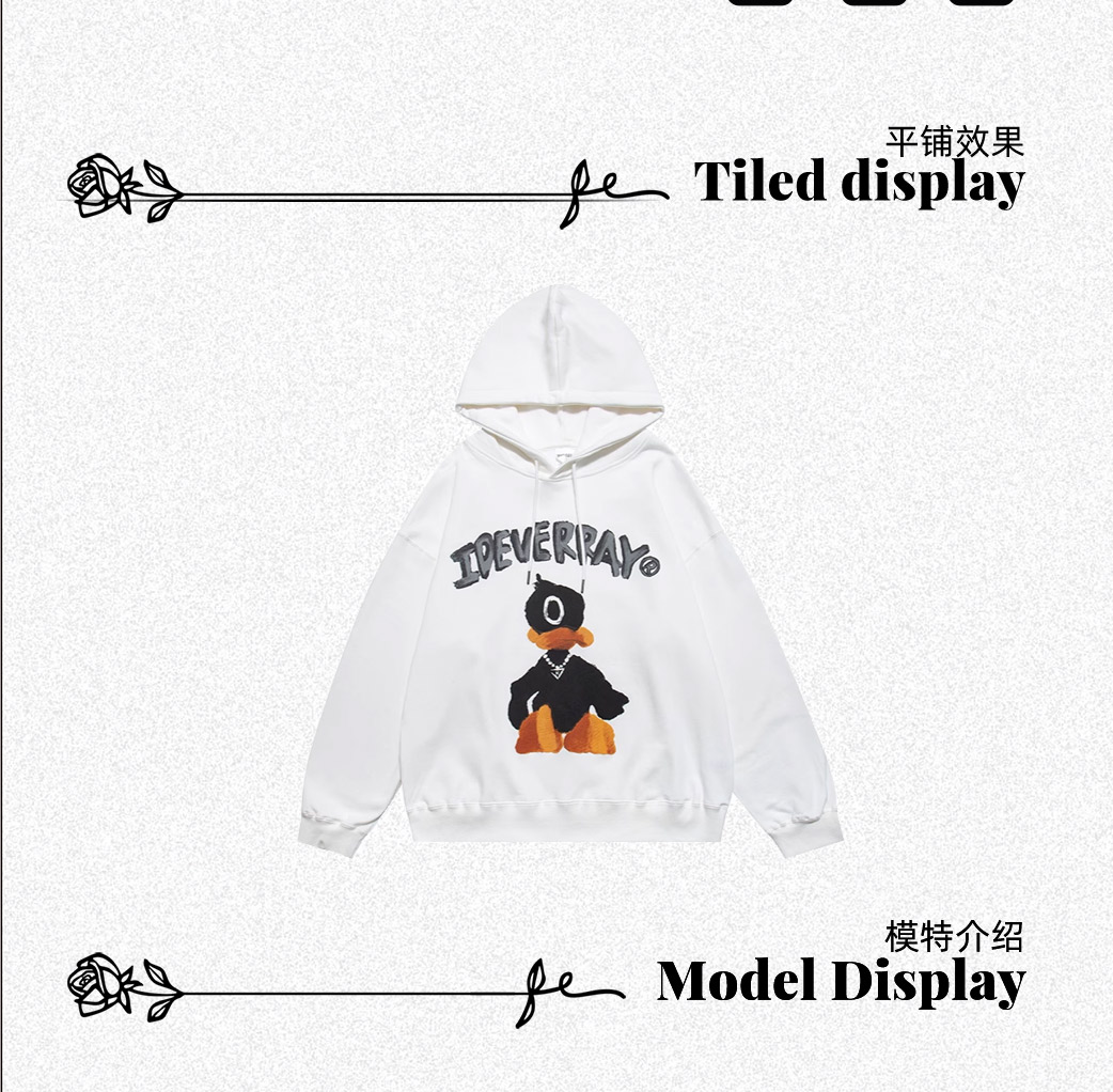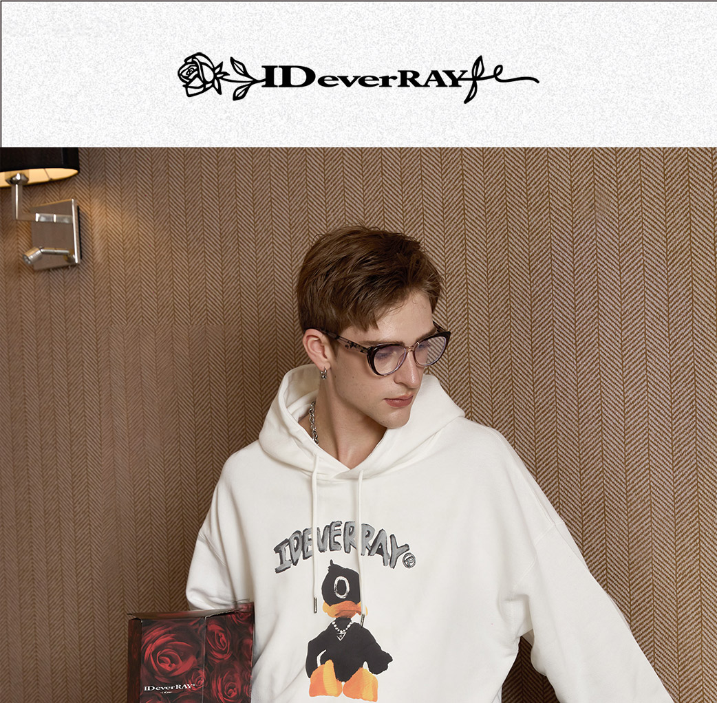 IDEVERRAY发泡小黑鸭连帽卫衣男宽松国潮上衣外套情侣装纯棉秋装