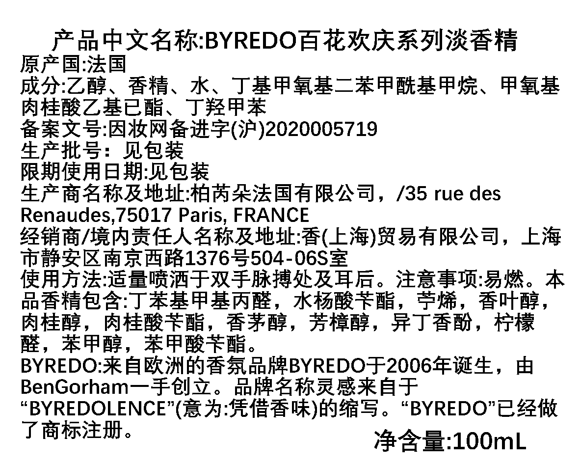 BYREDO百瑞德/柏芮朵 白色花环香水(停产/绝版)