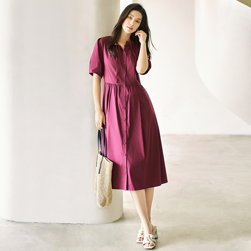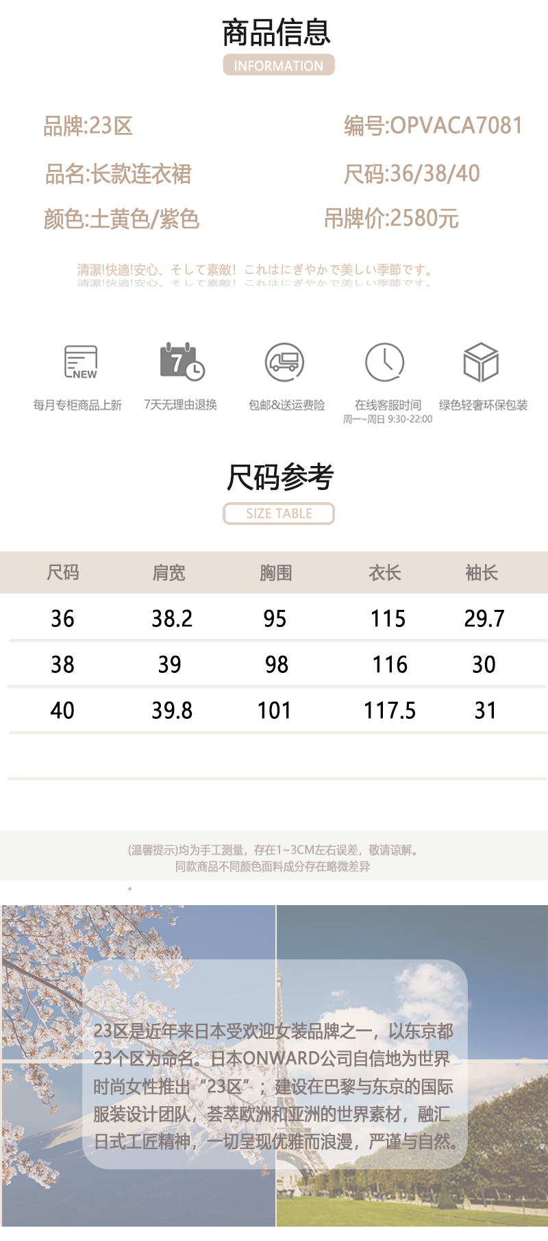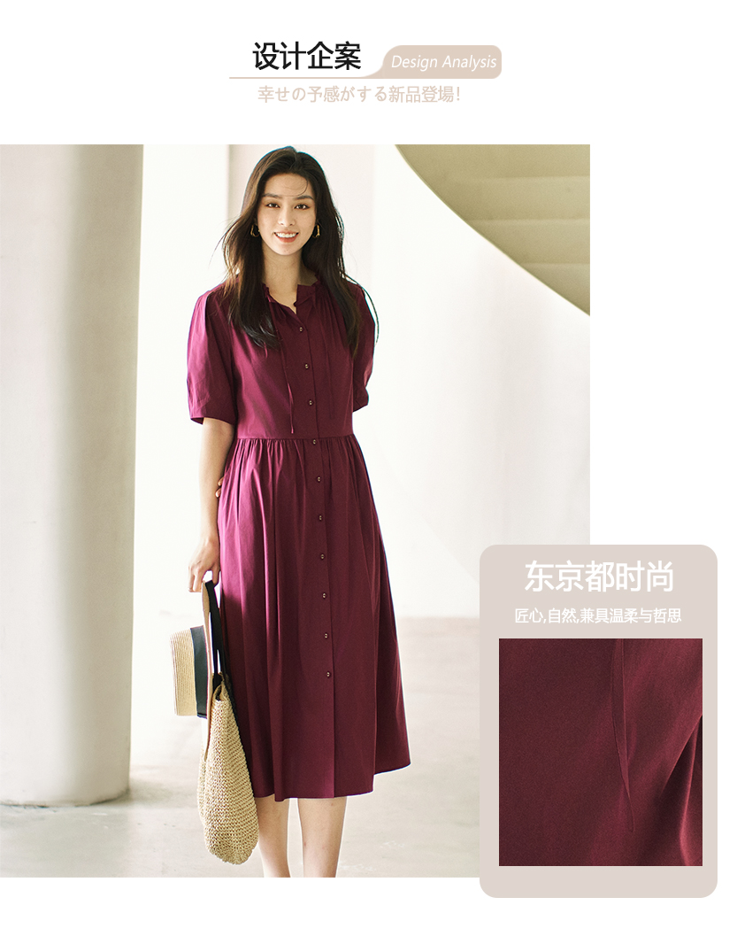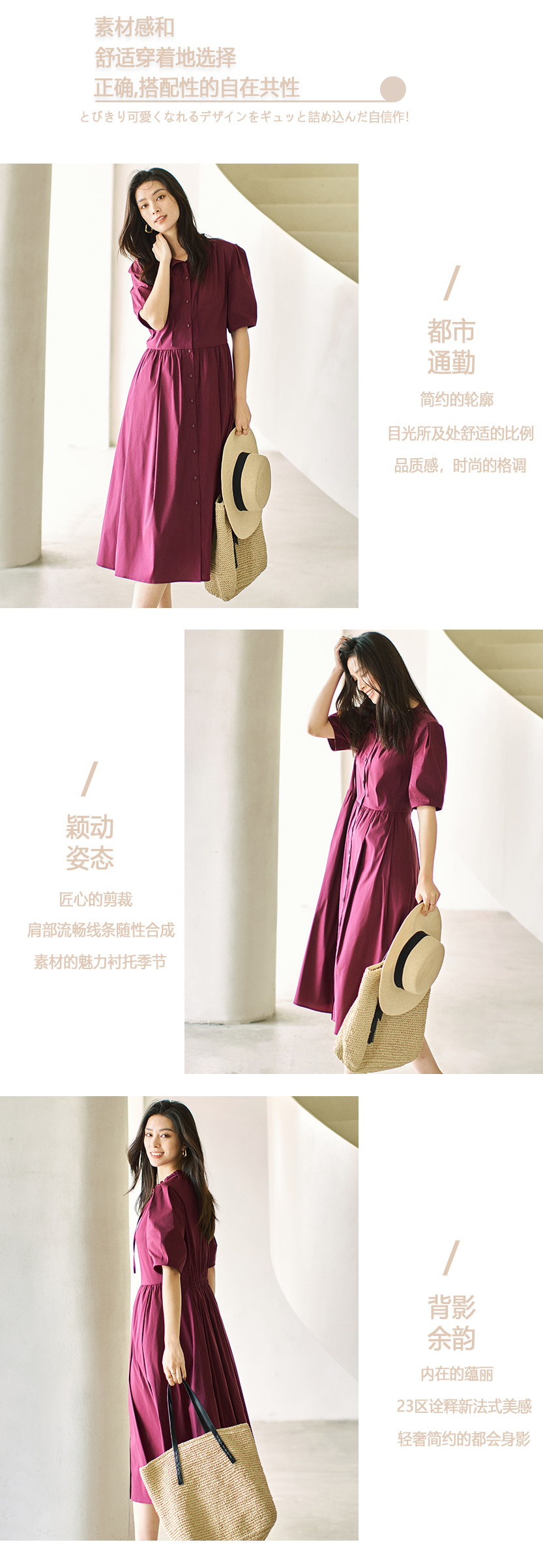 23区日系夏季通勤职业OL棉混纺立领拼接短袖连衣裙连身裙商场同款