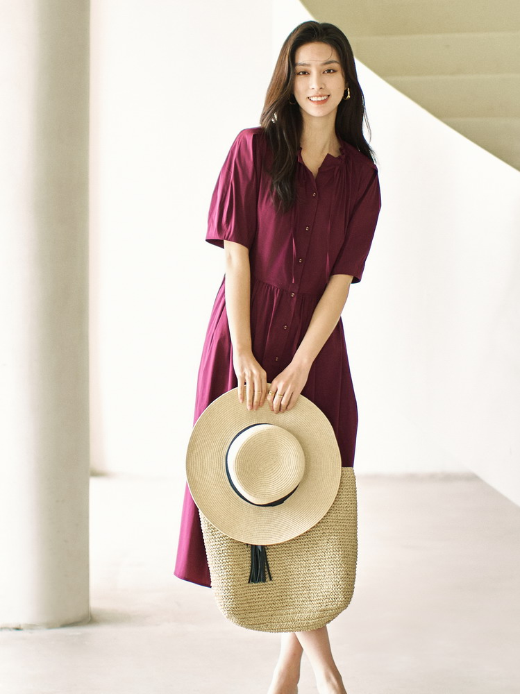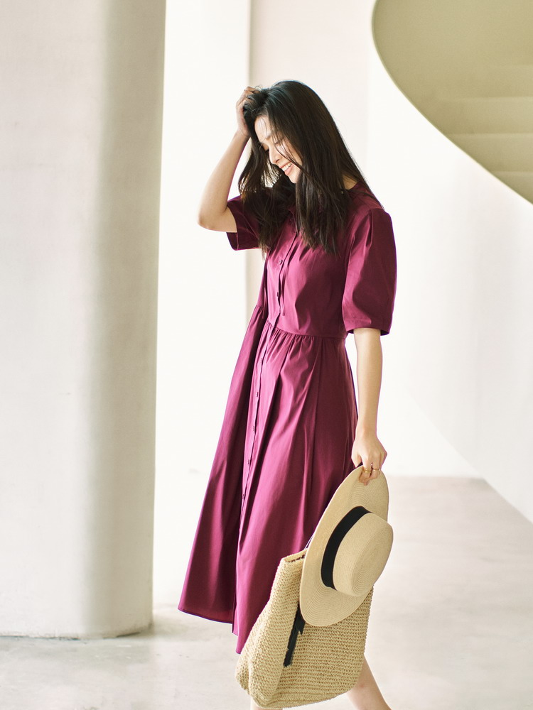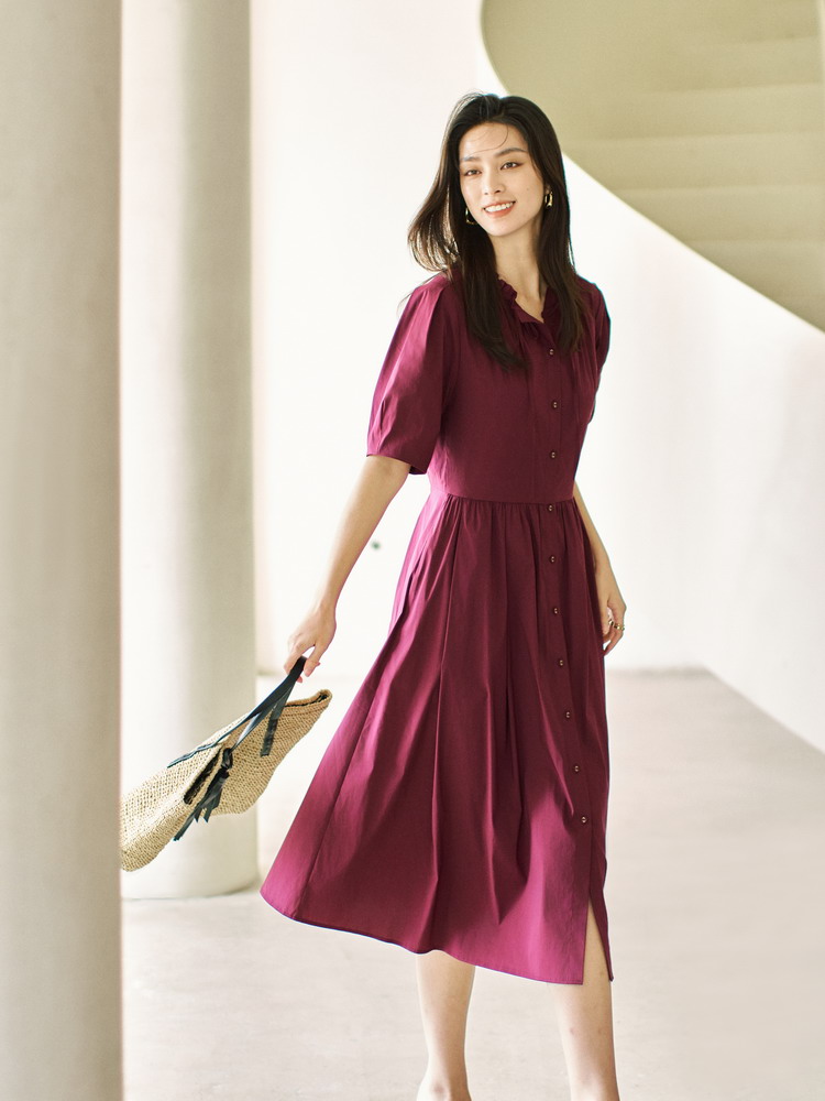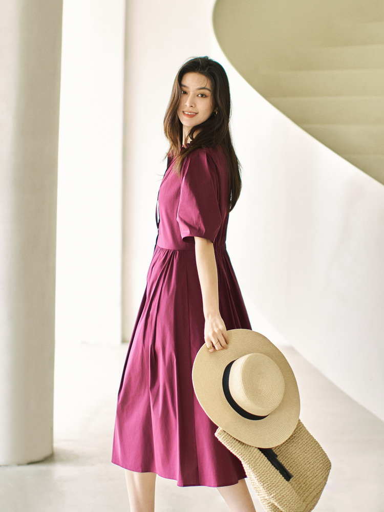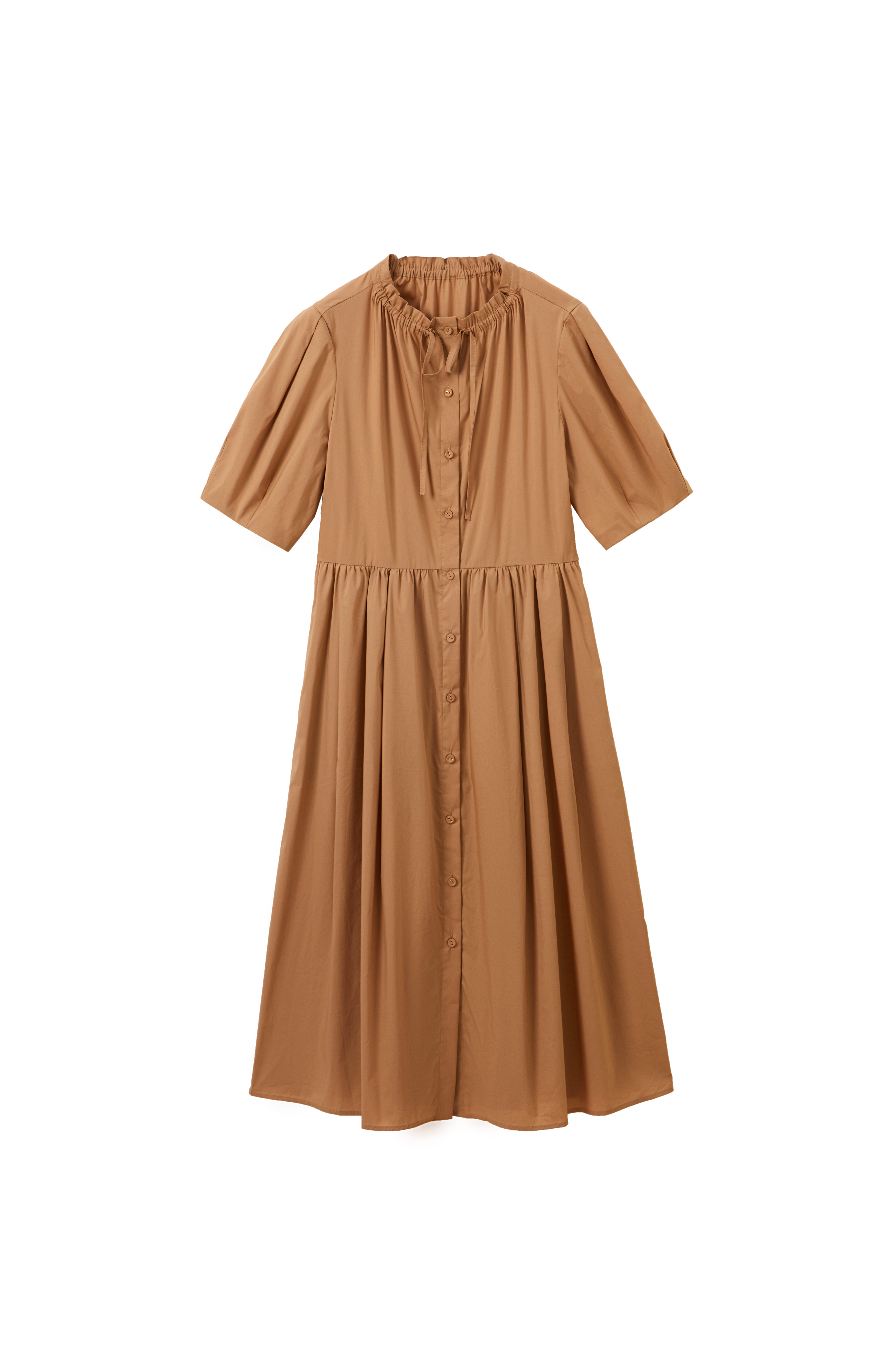 23区日系夏季通勤职业OL棉混纺立领拼接短袖连衣裙连身裙商场同款