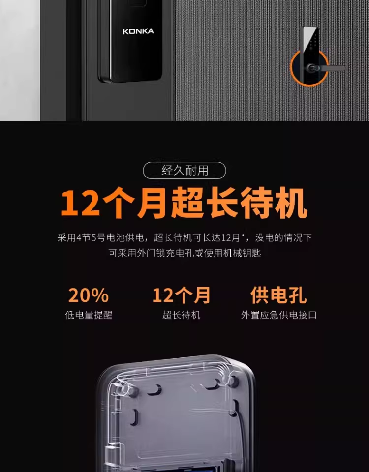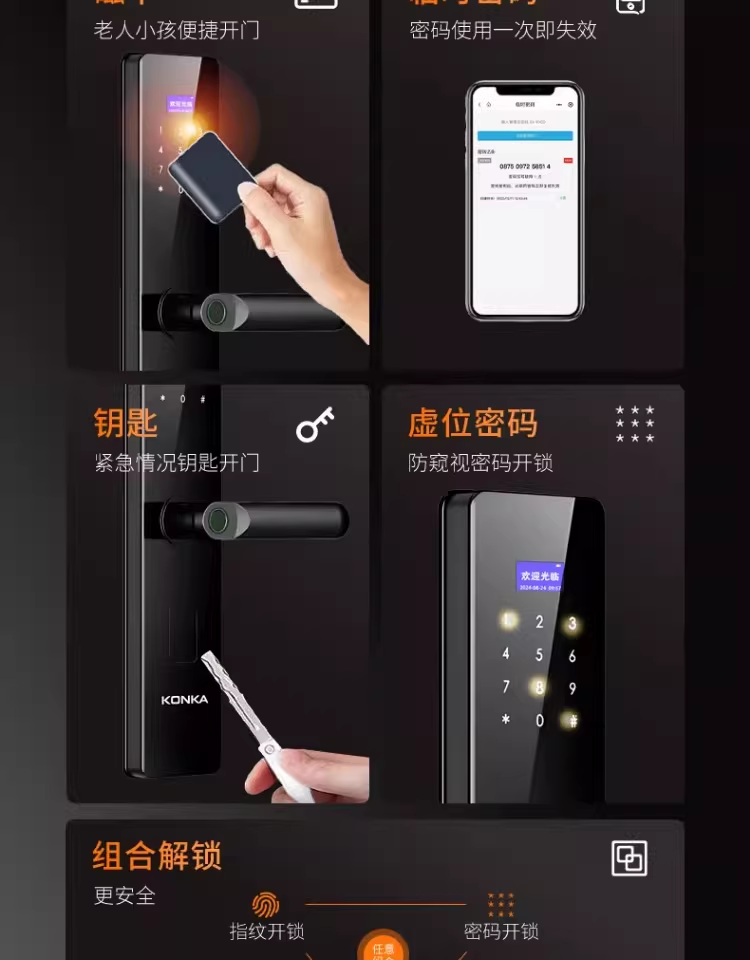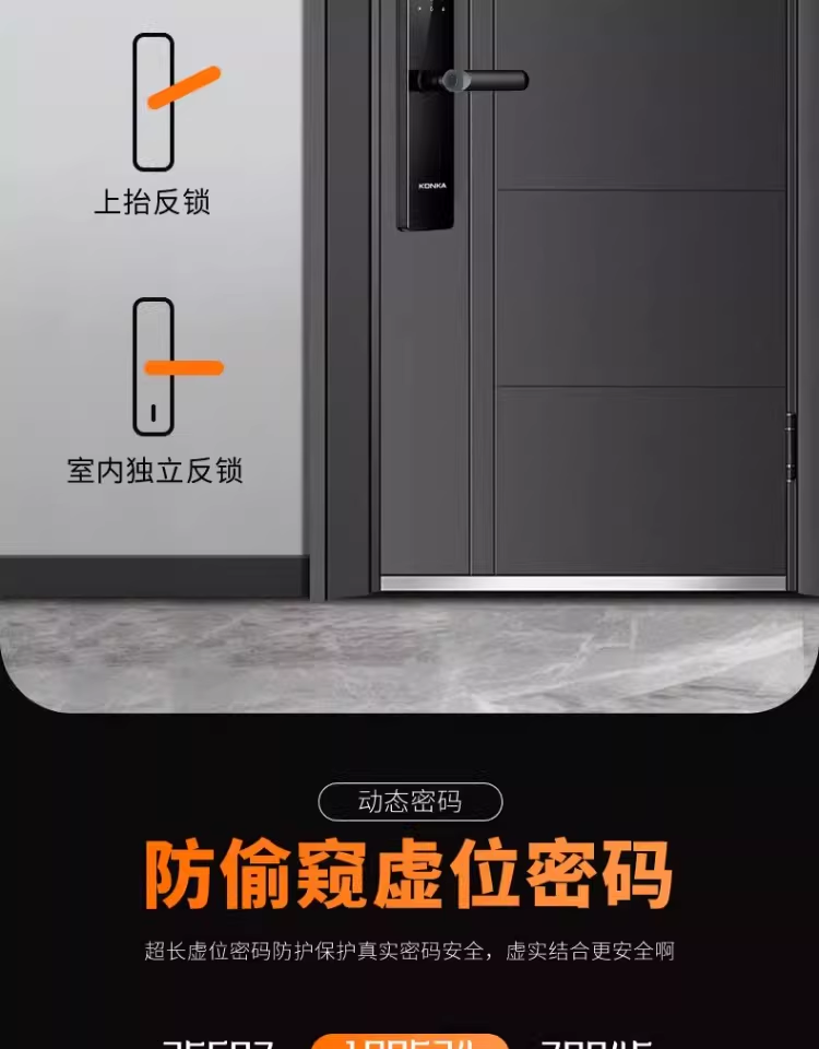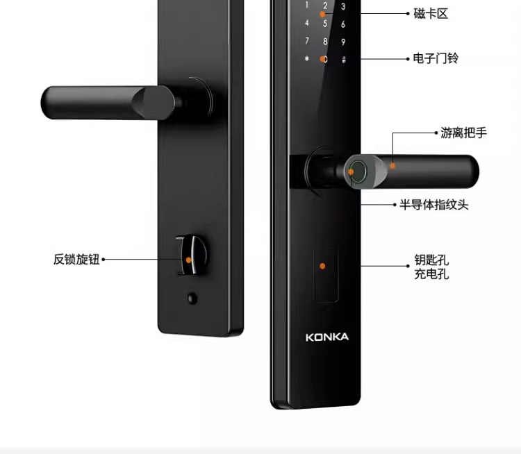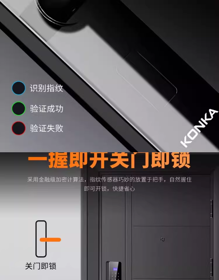 康佳(KONKA)指纹锁智能门锁家用防盗电子入户室内大门锁办公木门半自动密码锁 LX升级带屏款