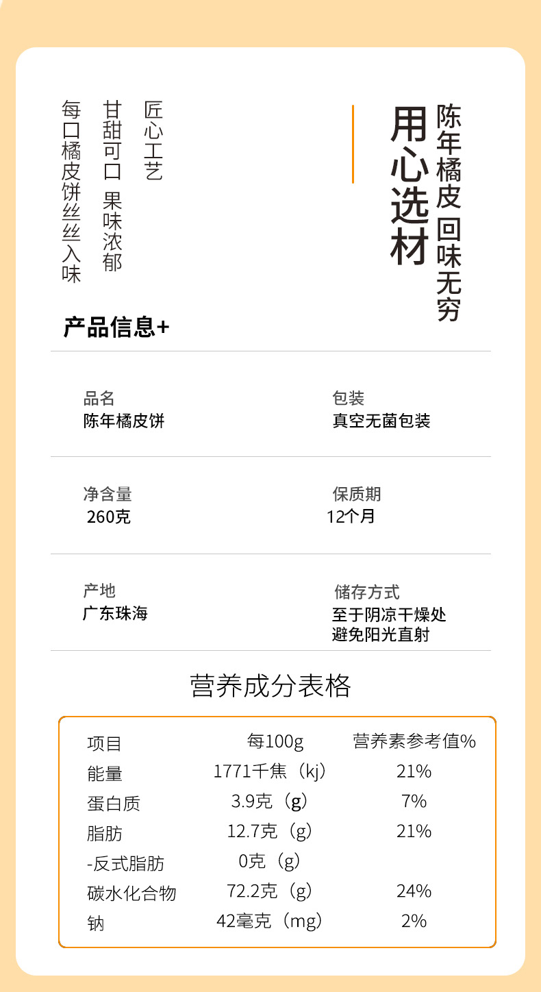西点港澳门手信陈年橘皮饼 260克*两盒—rxs