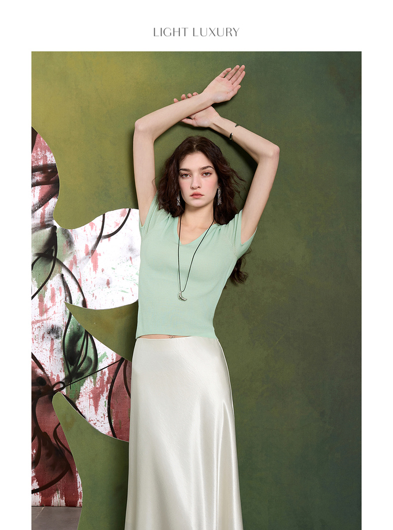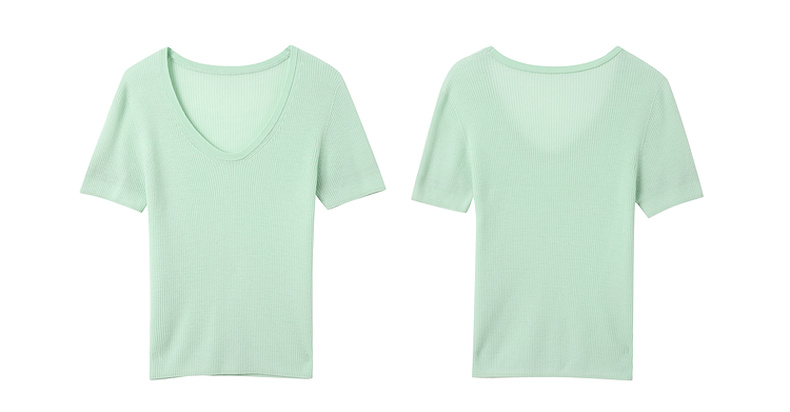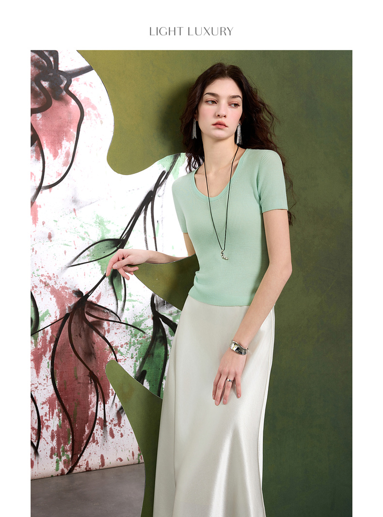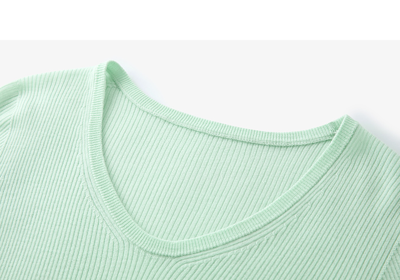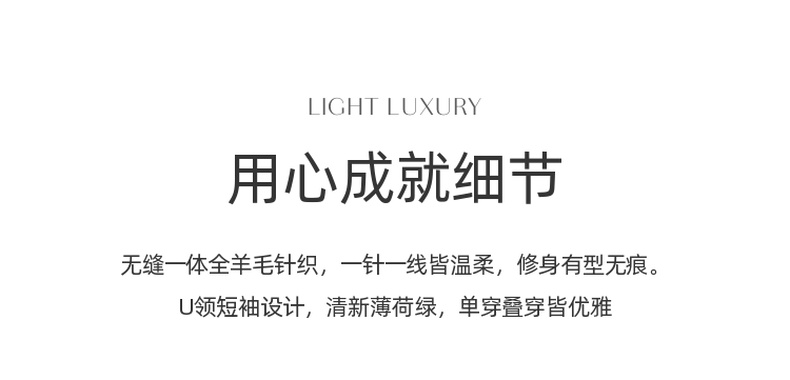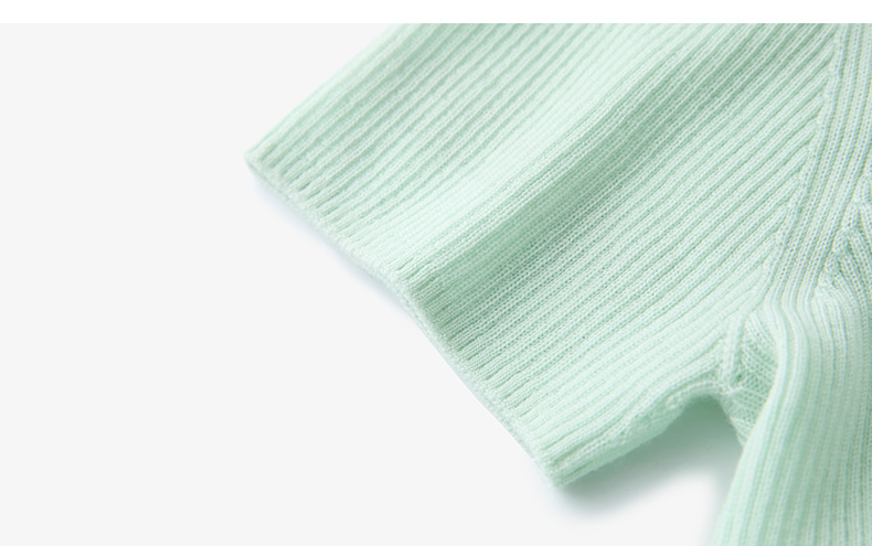 三彩2025春季新款无缝一体修身短款绵羊毛针织衫短袖套头衫S