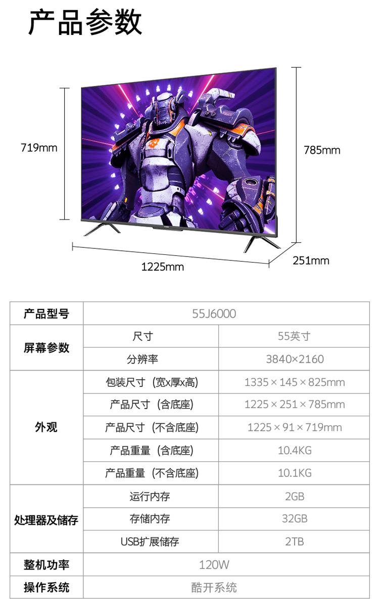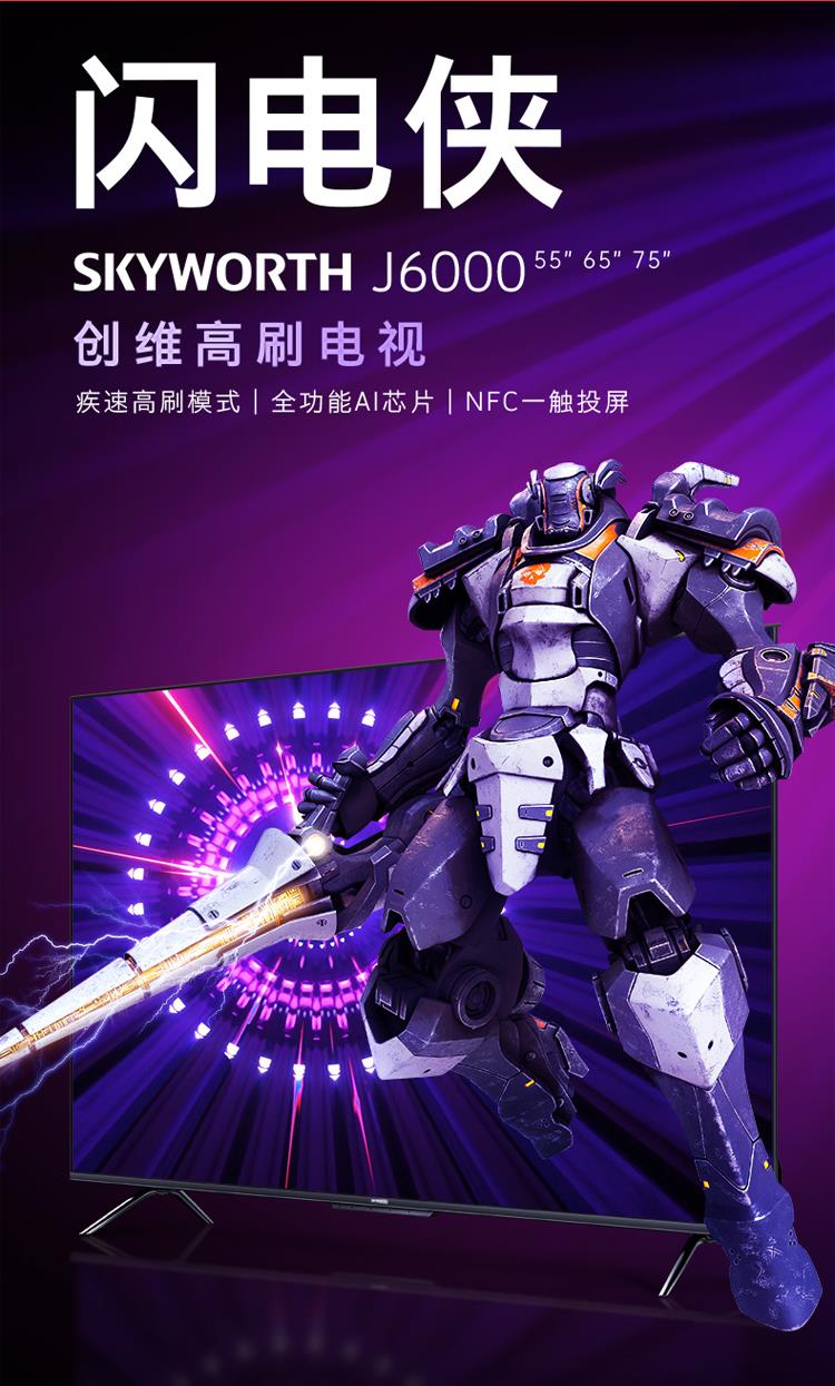 创维(Skyworth) 55J6000全面屏健康护眼系统 运动补偿 远场语音 乐享屏2+32G 55英寸J6000