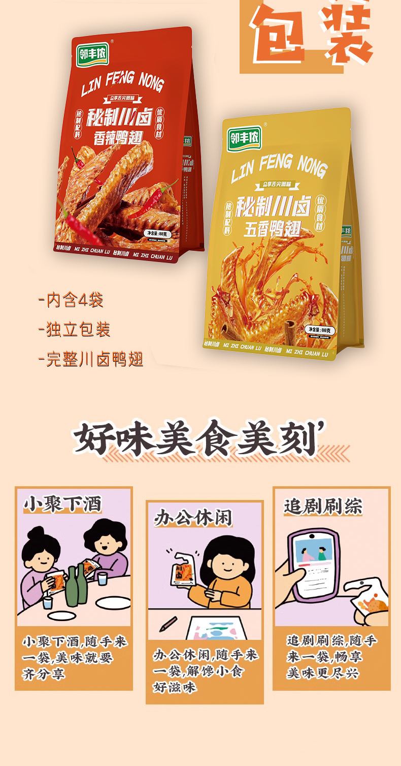 【炎鸿】邻丰侬 五香鸭翅 88g/袋*2袋