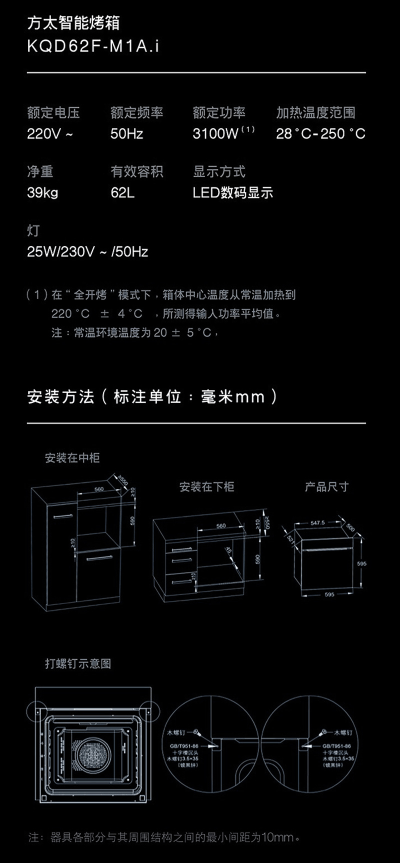 方太/烤箱/62F-M1A.i/家用烘焙嵌入式多功能智能触控电烤箱62L