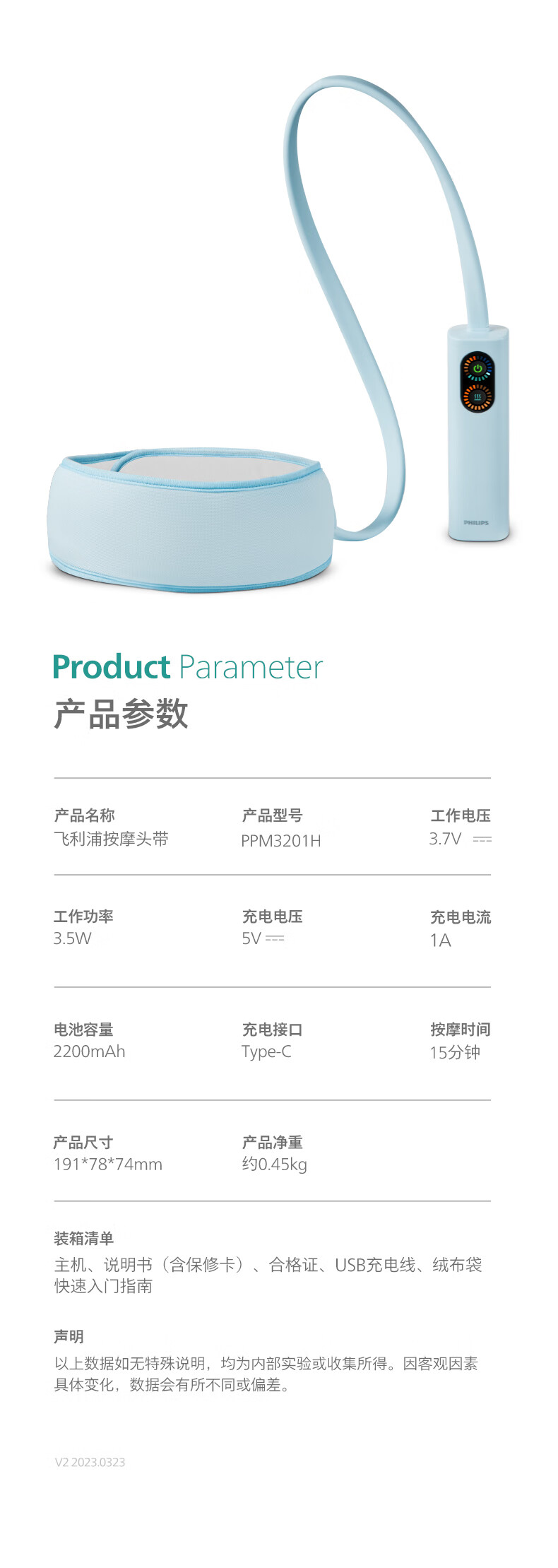 飞利浦(PHILIPS)头部按摩器按摩仪气囊环绕按摩热敷解压放松睡眠神器送礼家用男女友生日实用送长辈礼物PPM3201H