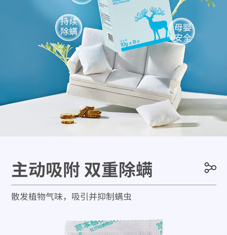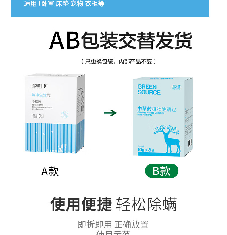 绿之源 中草药植物除螨虫包10g*8/盒大袋装 去螨虫床上非除螨喷雾家用母婴用