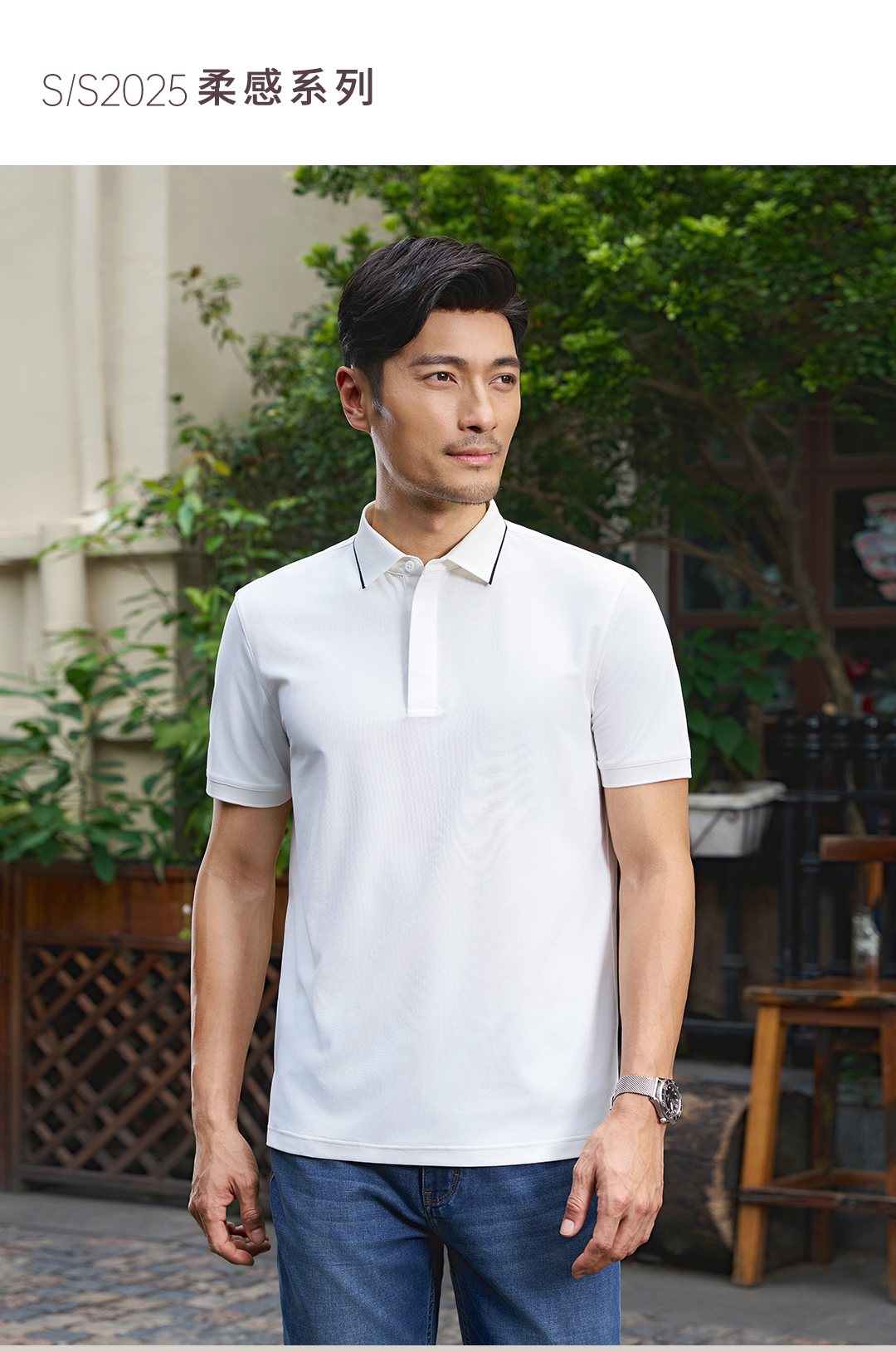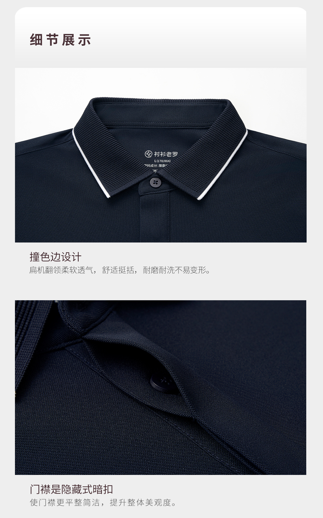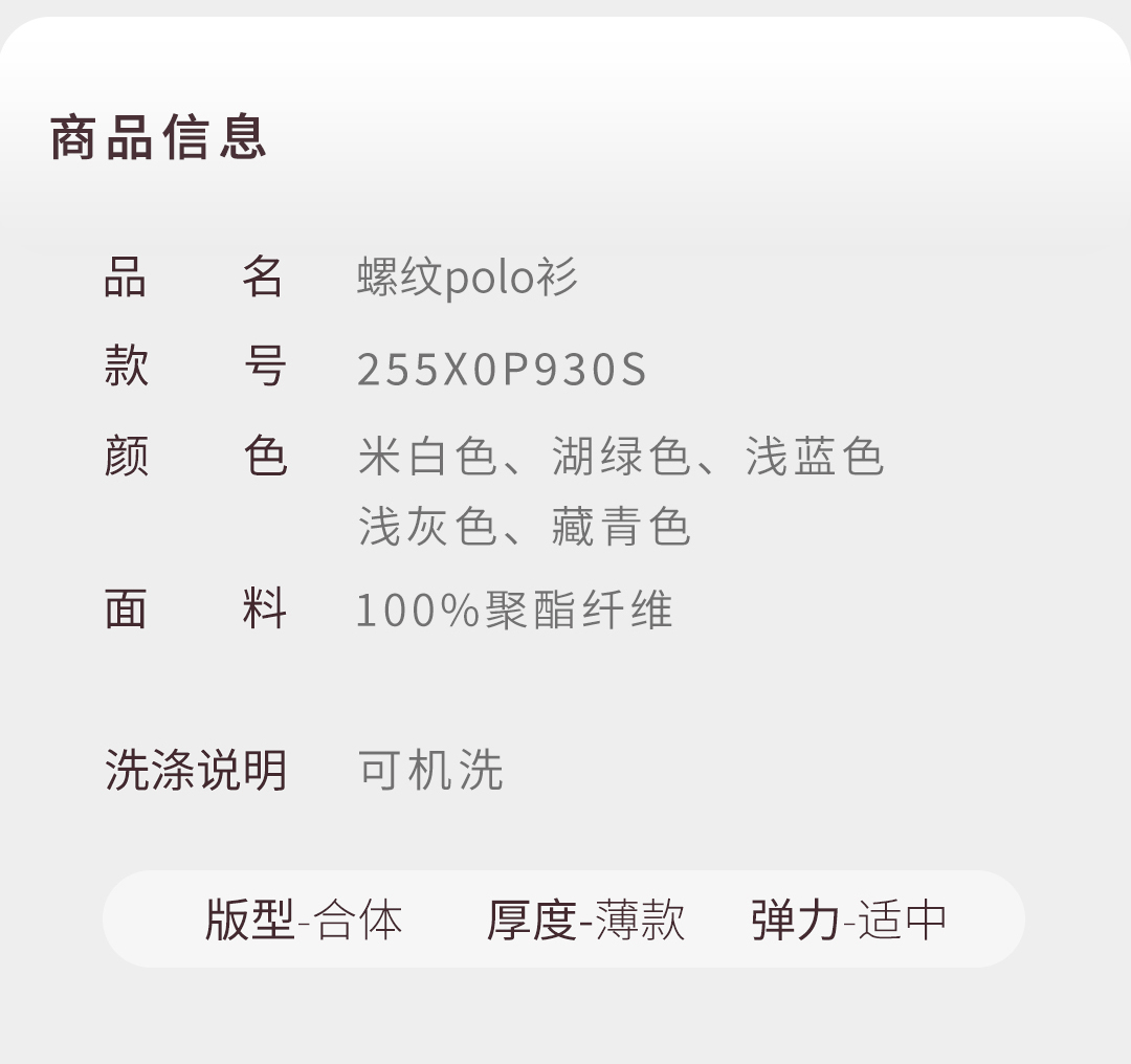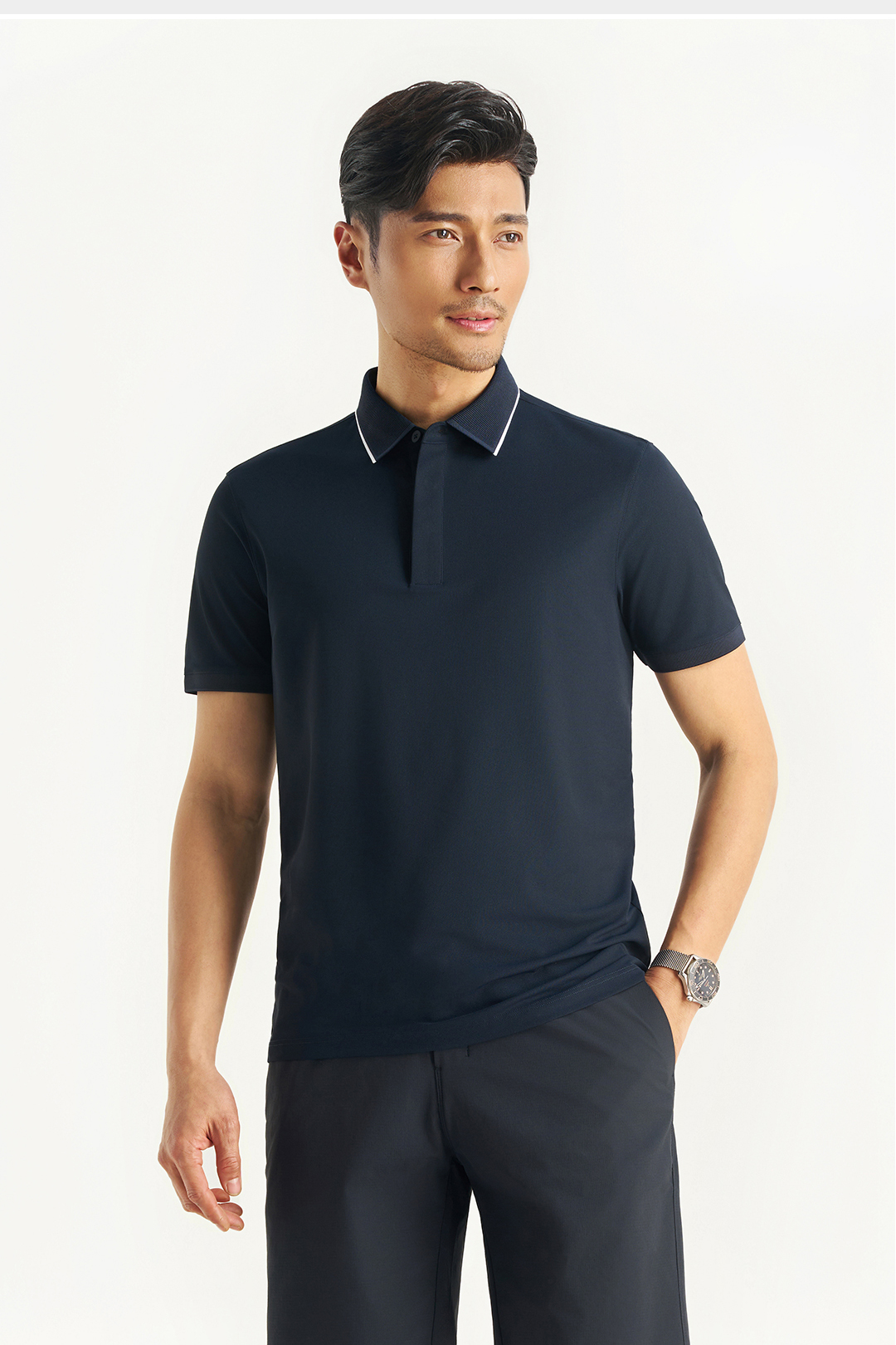 【柔感五号】撞色扁机领暗扣POLO衫255X0P930S[门店专款]