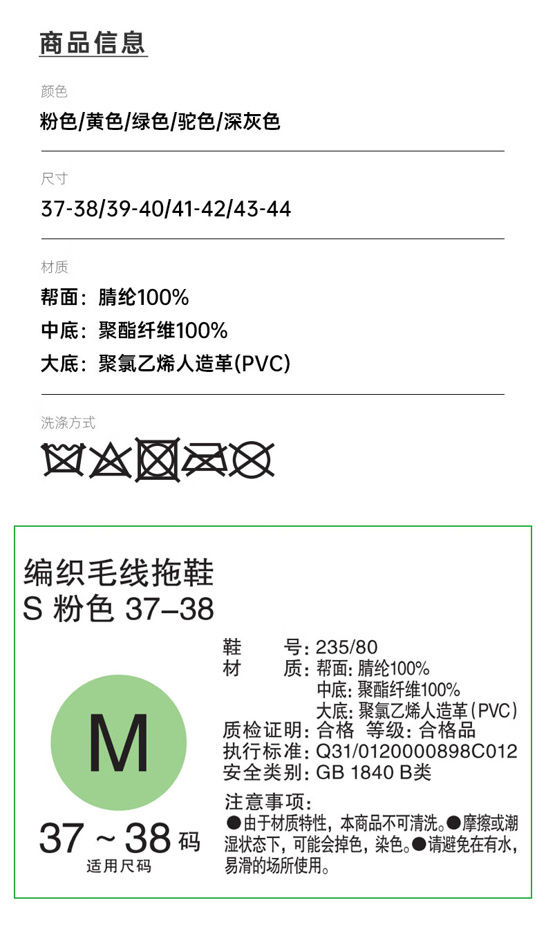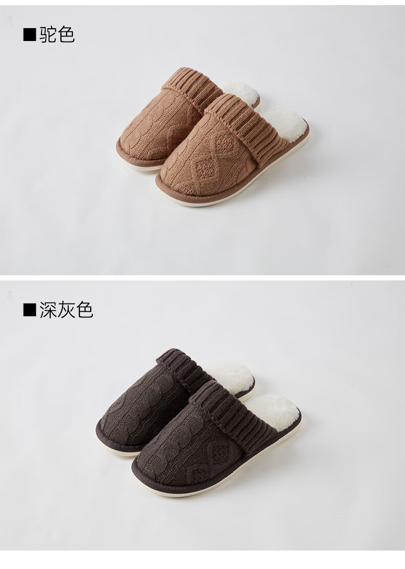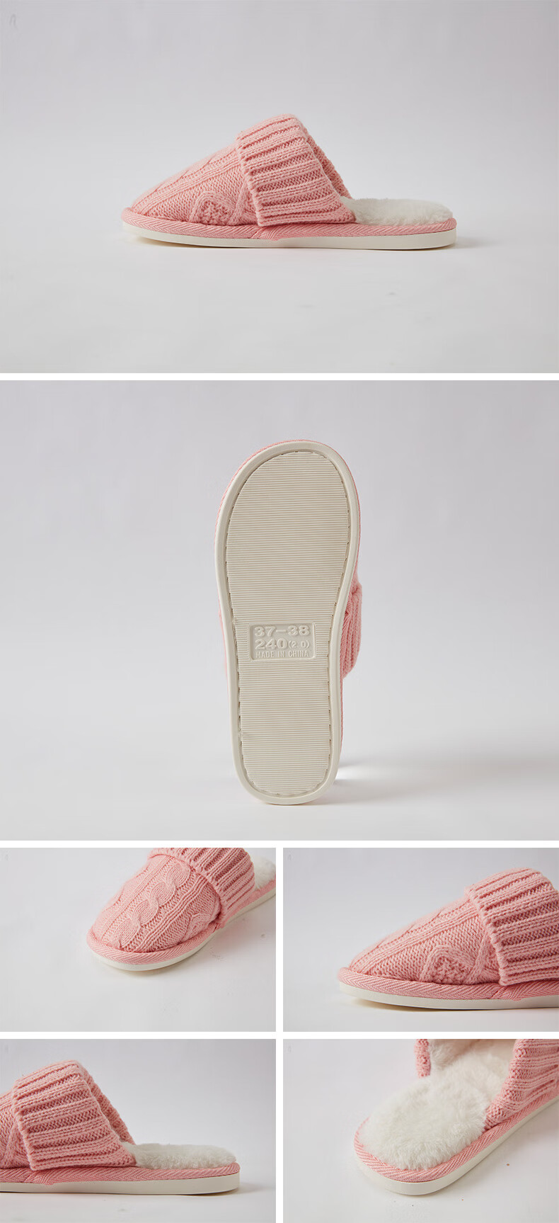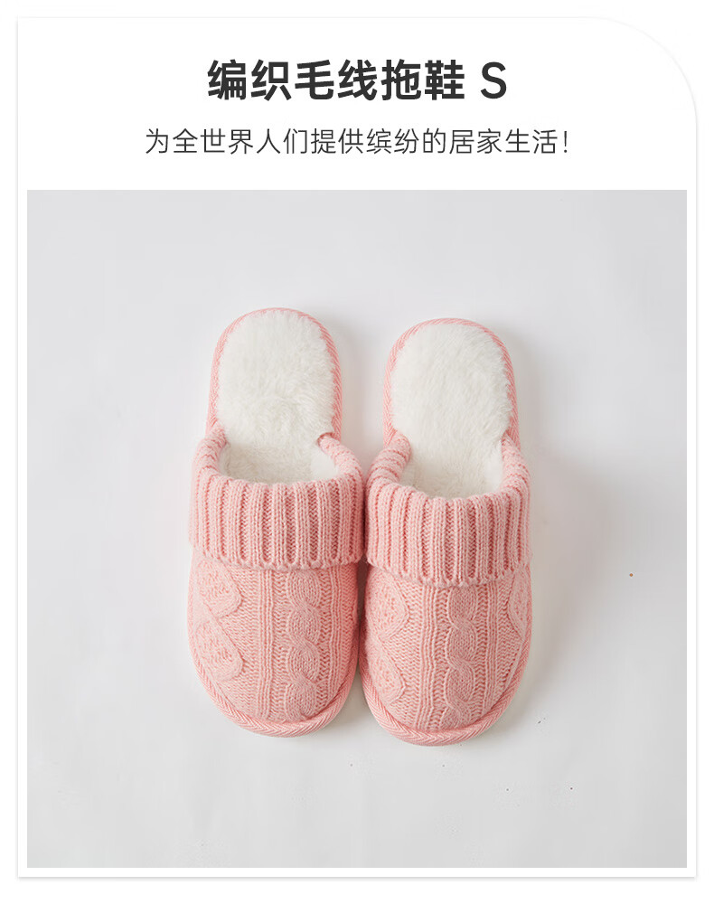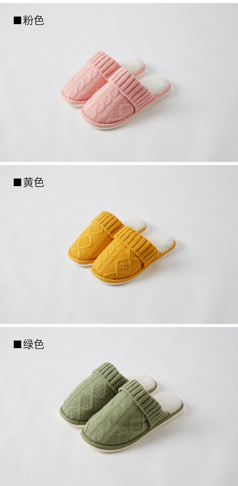 编织毛线拖鞋 粉色/绿色/驼色/深灰色