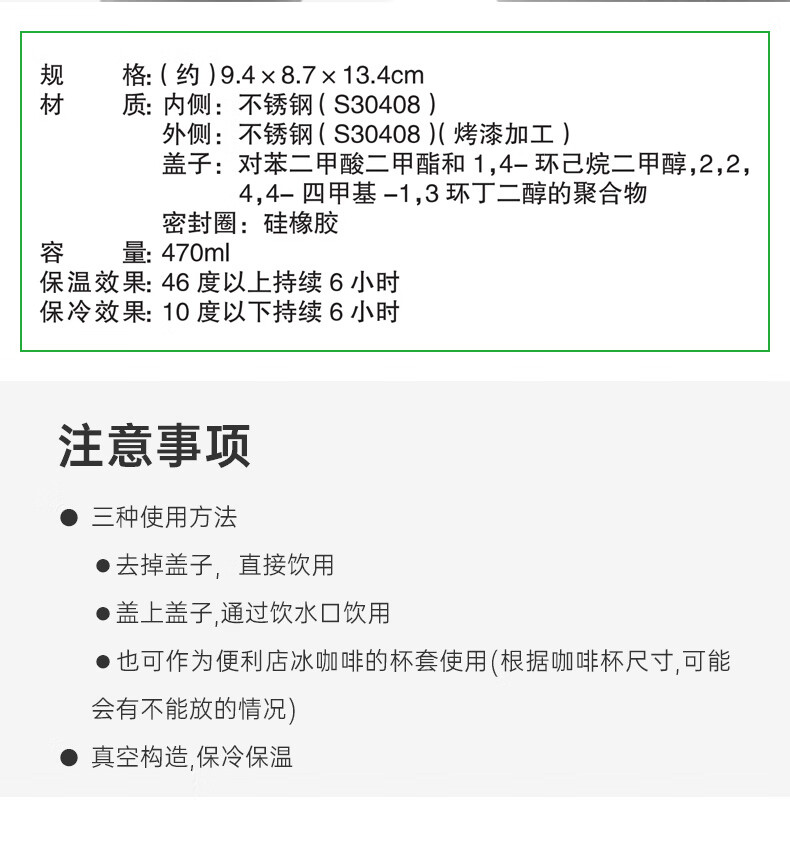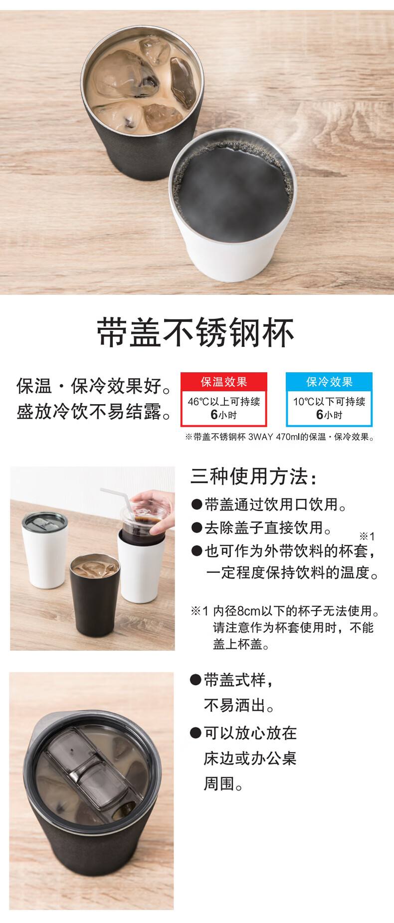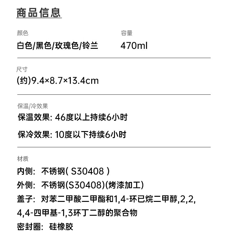 带盖不锈钢杯 3WAY 470ml 白色/粉色/铃兰