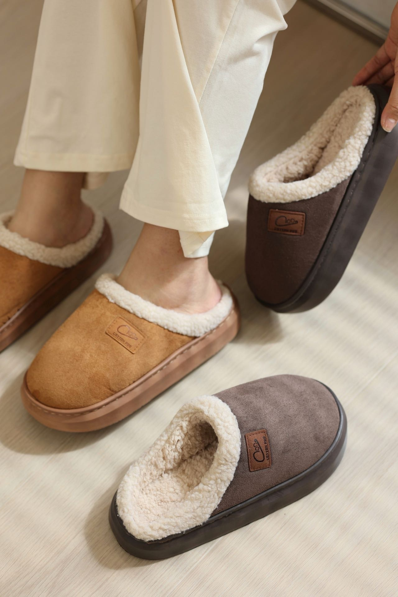 赶紧囤起来!秋冬保暖拖鞋提前购:2双低至39.8秒杀MU&CU【美拉德系情侣款棉拖】