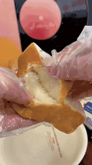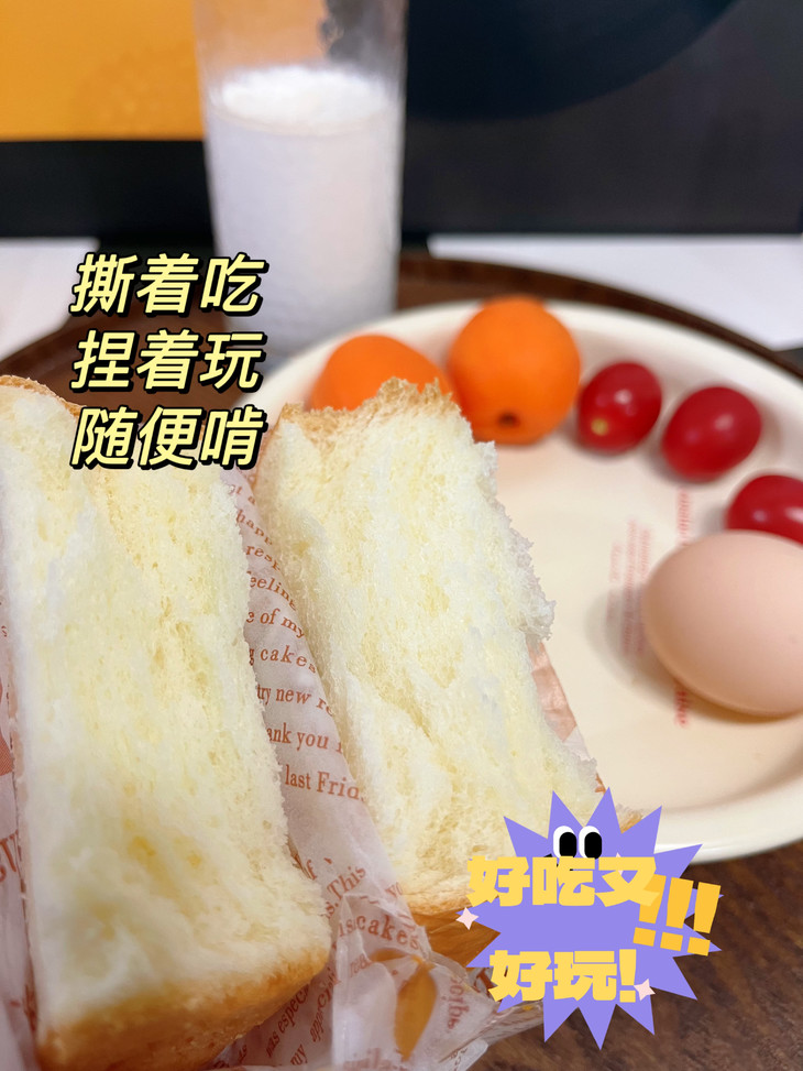 当然可不能忘了“朋友圈”先吃~ 📸 拍照打卡姿势: 1. 捏吐司gif配文"活的"! 2. 拉丝特写配文"这长度慕了" 3. 和吐司自拍配文"新男友"