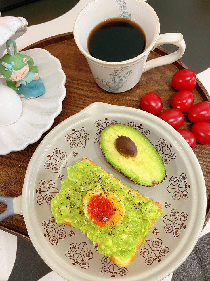 ❷ 凡尔赛早餐公式 云朵吐司+牛油果+溏心蛋 拍照发圈并配文: "哎,随便做的早餐将就吃吧" (实际准备时间1小时)